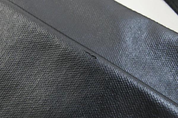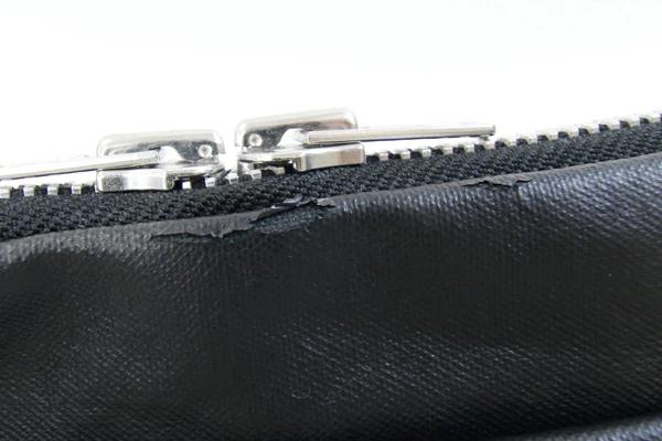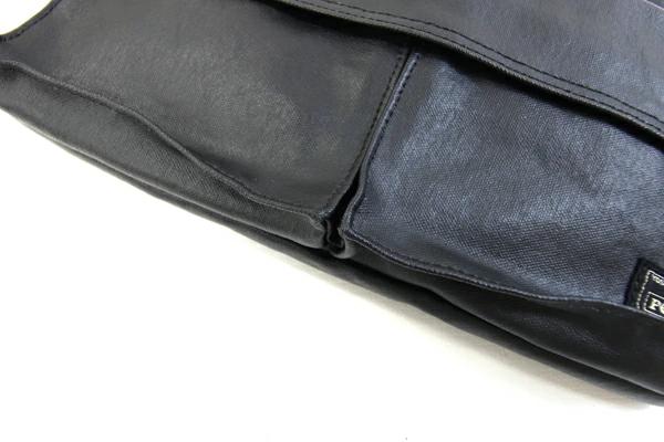 状態外側:ポケットの角にスレあり。正面側の上部フチ・ポケットのフラップにコーティング剥がれあり。
