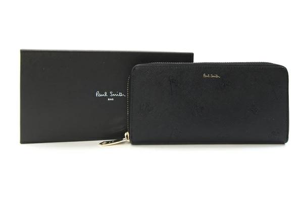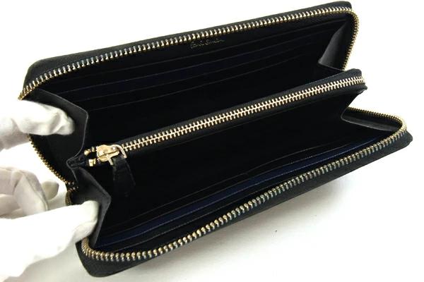Pre-owned Paul Smith PSC955 round zipper long wallet in black leather with a logo. Men's.
