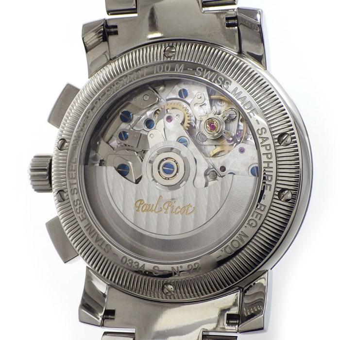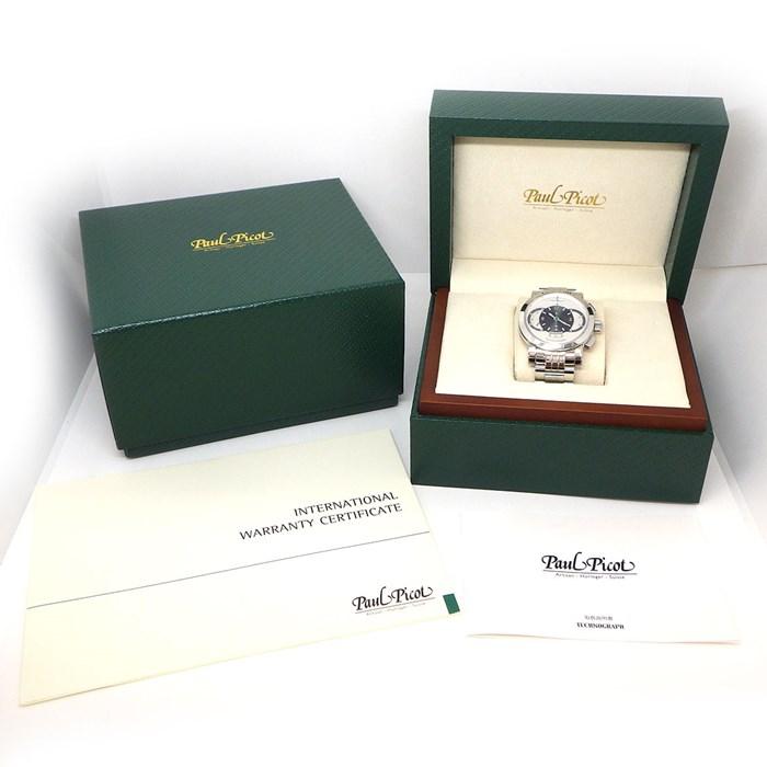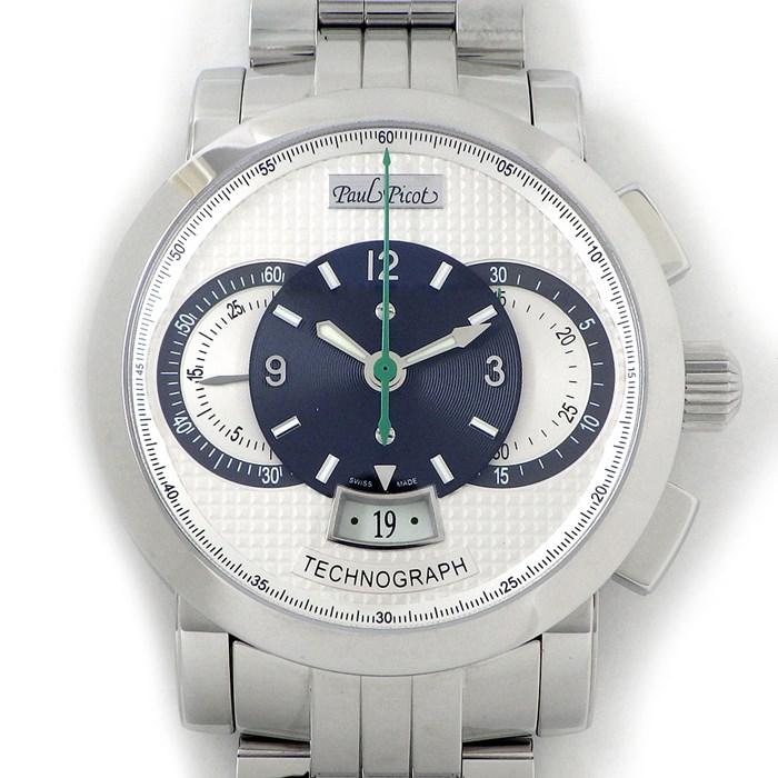 ポール ピコ Paul Picot 腕時計 テクノグラフ クラシック P0334.SG.4000.7401-2 ホワイト文字盤 デイト クロノグラフ スモールセコンド 裏スケ 夜光針・インデックス SS 自動巻き 【箱・保付き】 【中古】