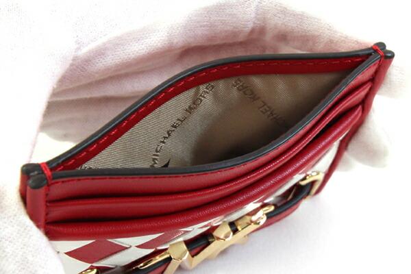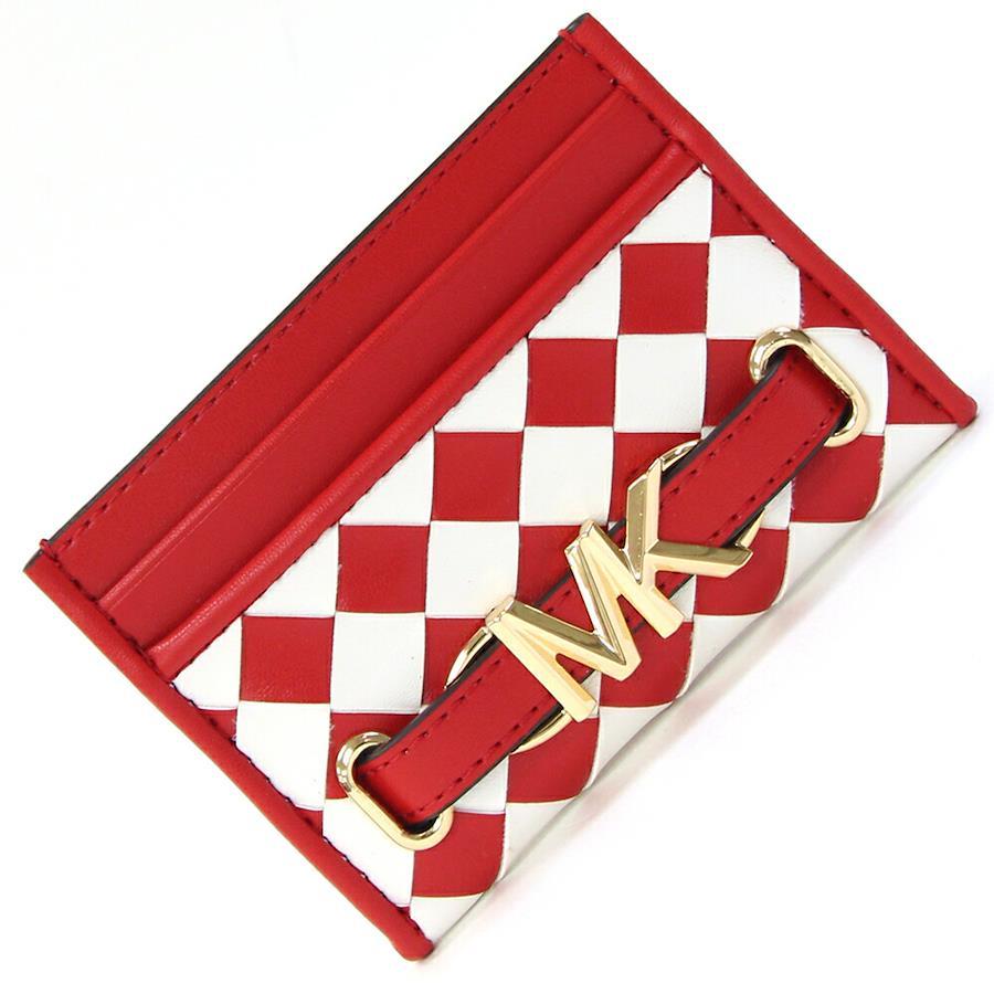 マイケルコースカードケース35T4G6RD3Yレッドホワイトレザー中古カードホルダーパスケース定期入れMKロゴ編込みレディースMICHAELKORS