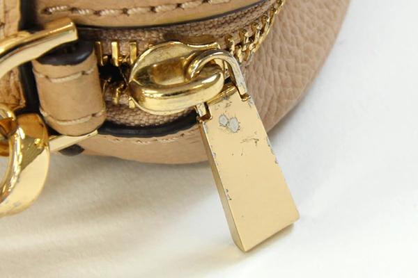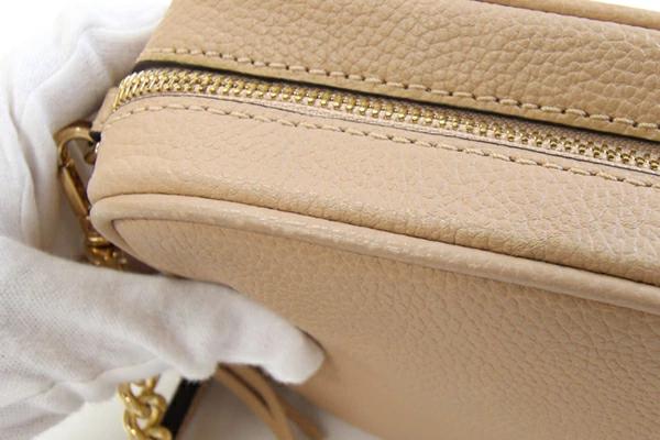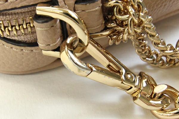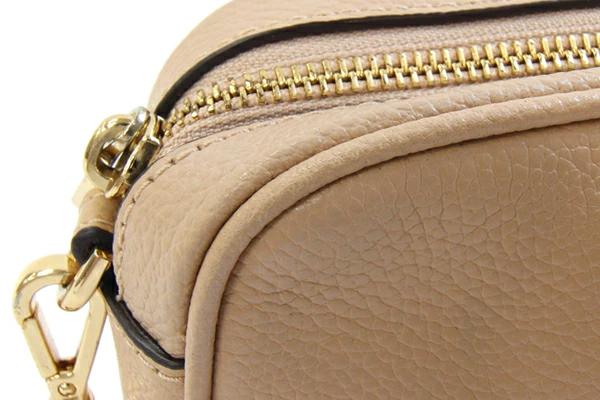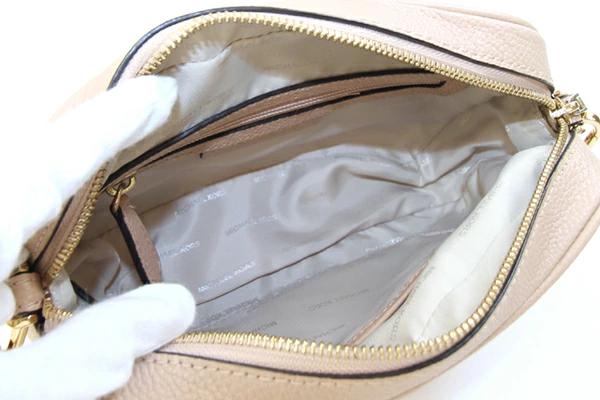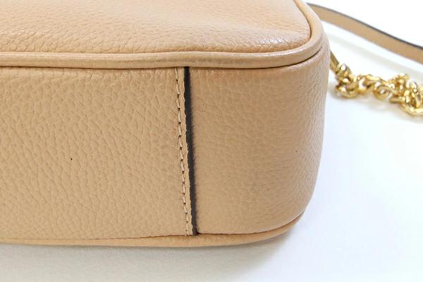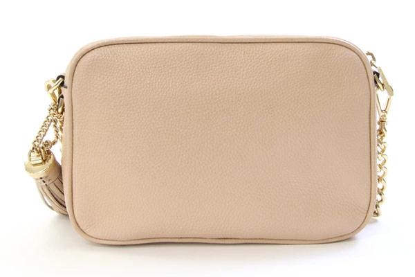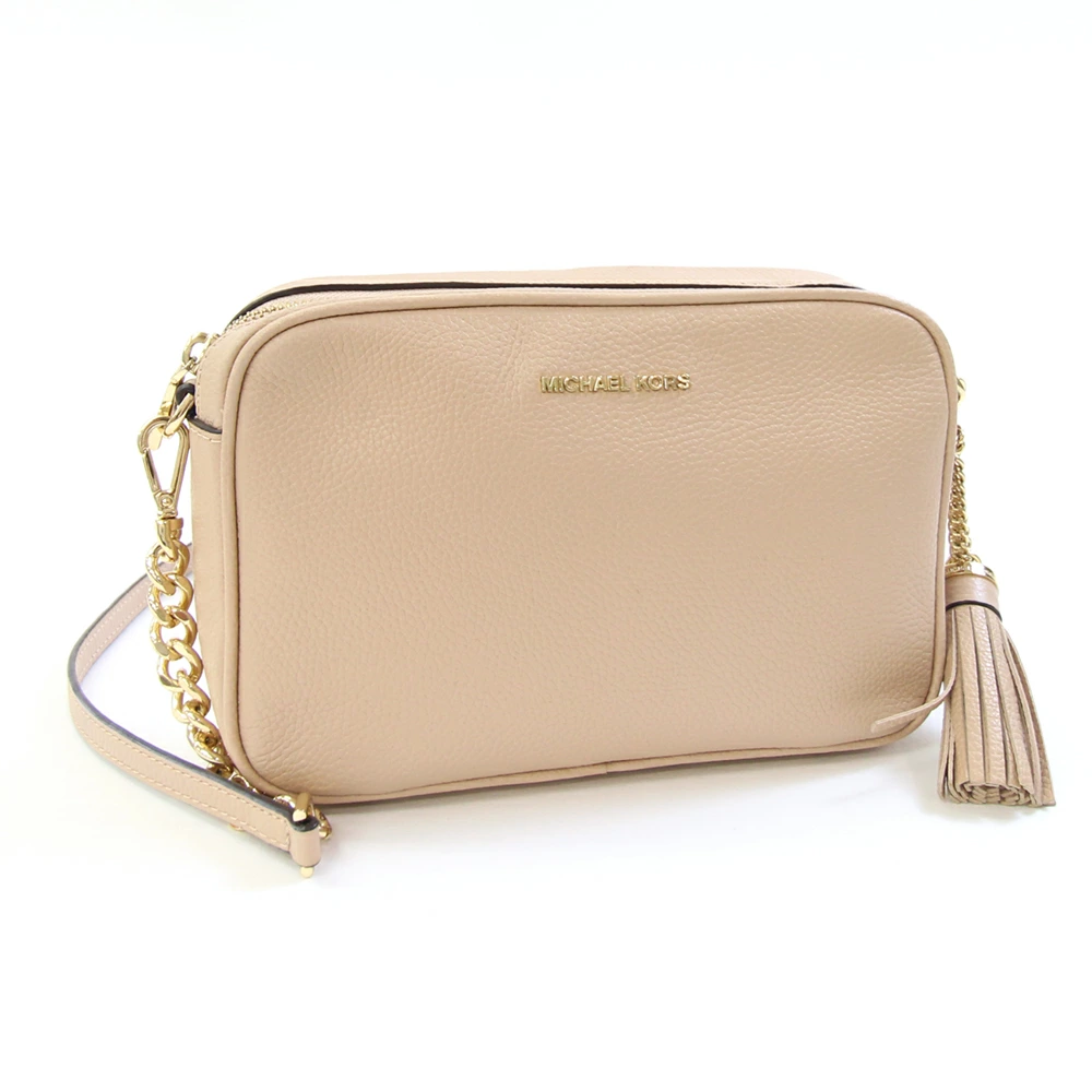 Pre-owned Michael Kors Genie Shoulder Bag (32F7GGNM8L) in Beige Leather. This crossbody pouch/camera bag features a chain shoulder strap and tassel closure. Women's.