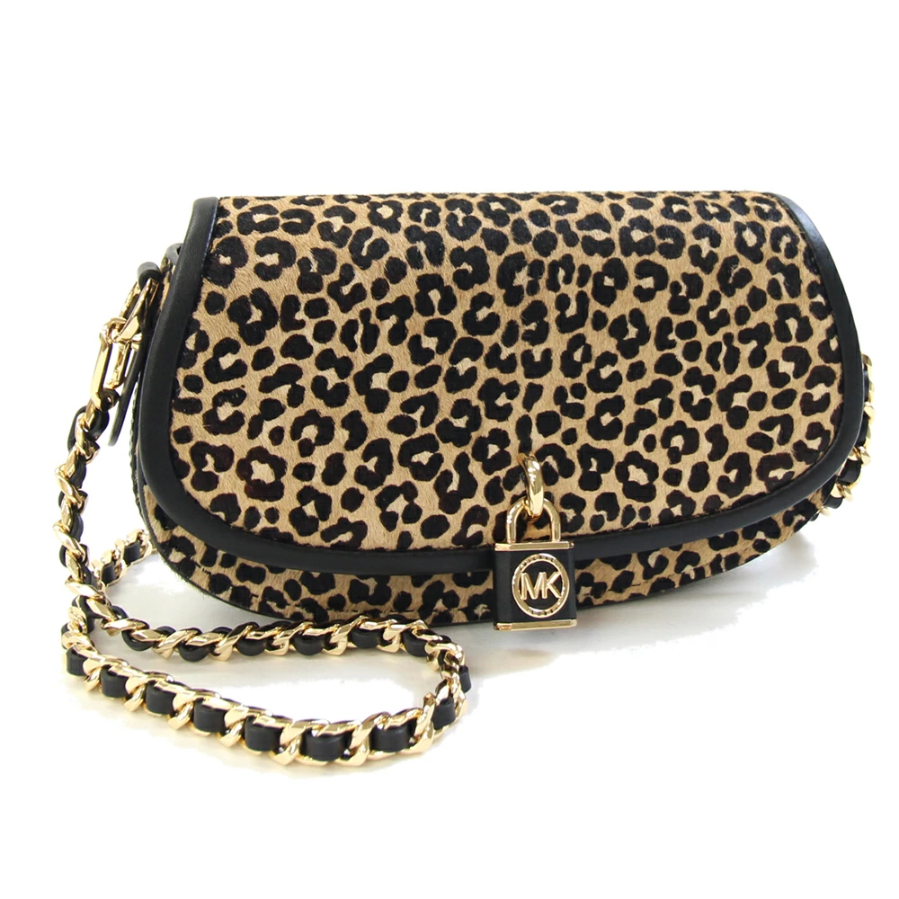 Pre-owned Michael Kors Chain Link Sling Crossbody Shoulder Bag, Small, 30F3GIMM1H, in Beige and Black Hair Calf Leather. Leopard Print Chain Shoulder Bag. MICHAEL KORS Women's.
