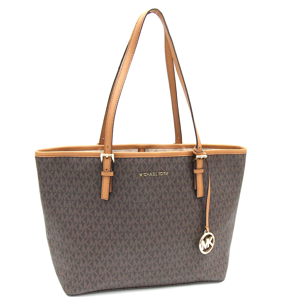 Pre-owned Michael Kors Jet Set Travel Tote Bag, MD 35H8GTVT2B, Dark Brown/Light Brown PVC Leather, Shoulder Bag with Logo, Women's.