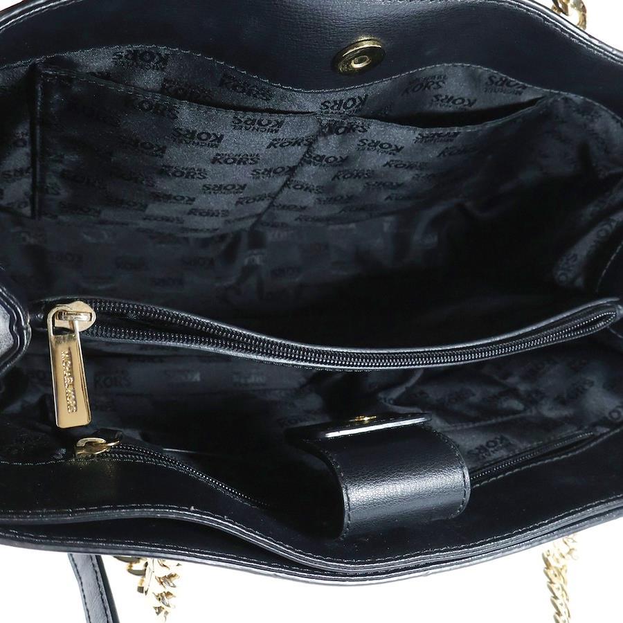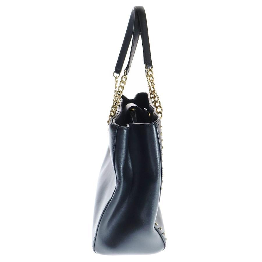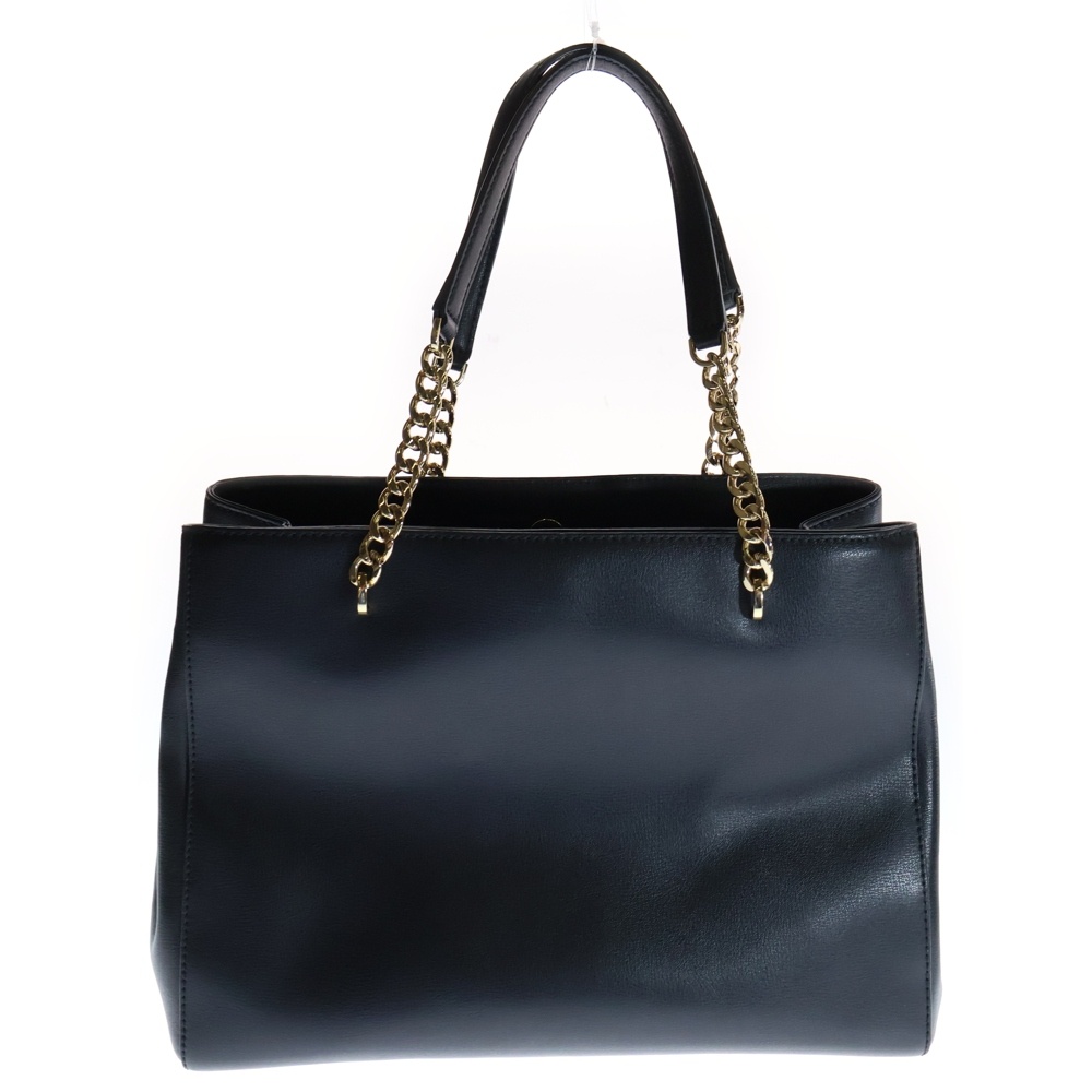 [モデル]ロゴ スタッズ付 レザーチェーントートバッグ ブラック レディース