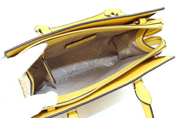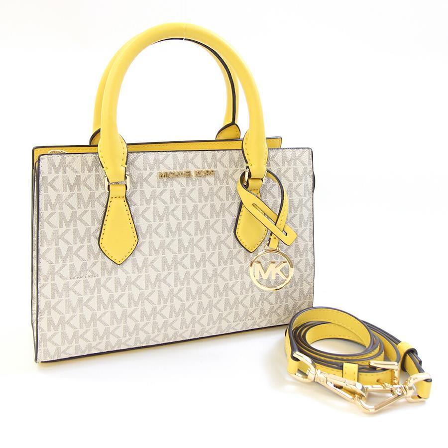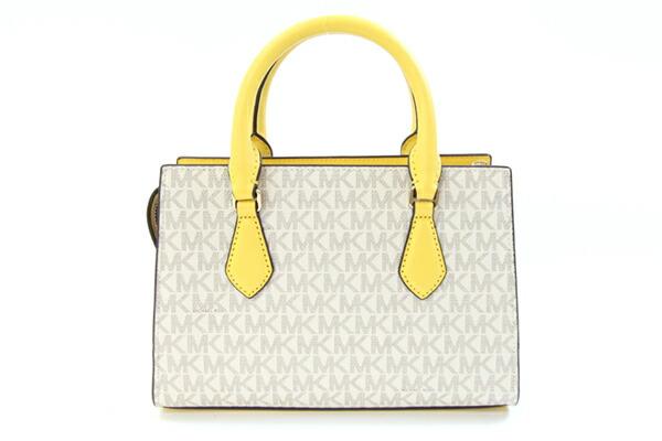 マイケルコース2WAYハンドバッグシェイラ35S3G6HS5BホワイトイエローPVCレザー中古ショルダーバッグ斜め掛けミニバッグMKシグネチャーレディースMICHAELKORS
