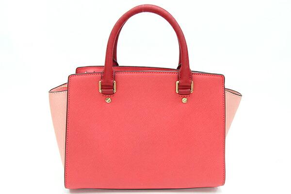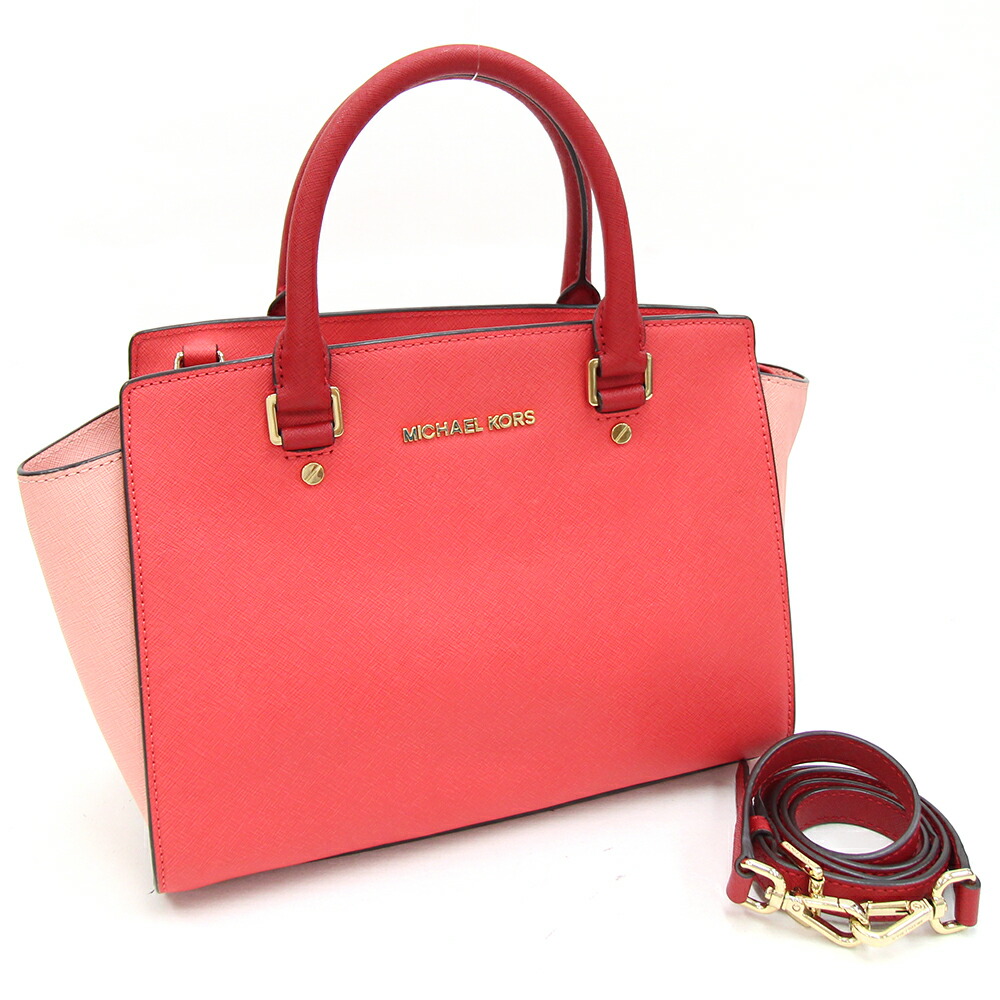 マイケルコース2WAYハンドバッグセルマミディアムトップジップサッチェル30T4MLMS2Tレッドピンクライトピンクレザー中古ショルダーバッグ斜め掛け肩掛けトリコロールレディースMICHAELKORS
