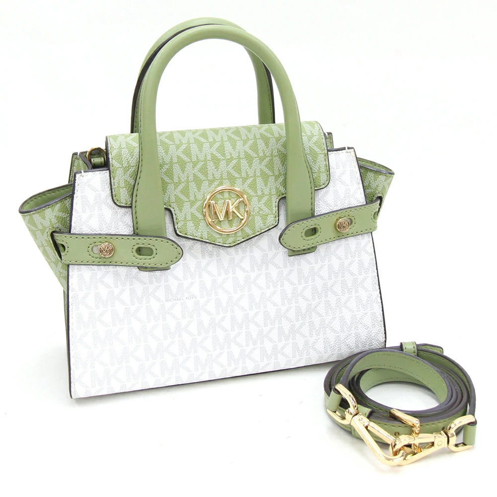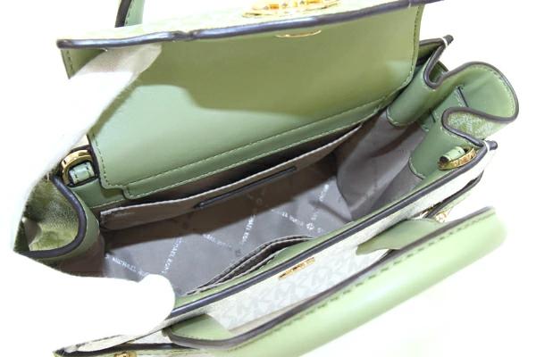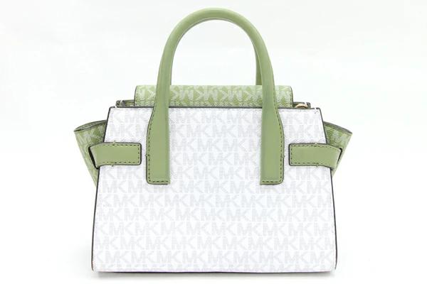 Pre-owned Michael Kors 2-Way Handbag 35S2GNMS5V in White and Green PVC Leather. Mini Bag with Logo. Can be worn crossbody or over the shoulder. Women's. MICHAEL KORS