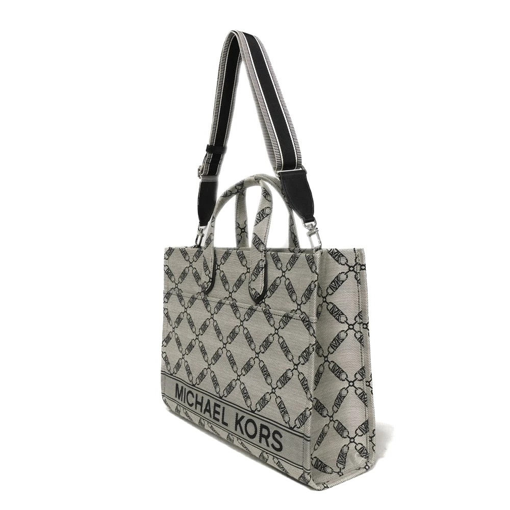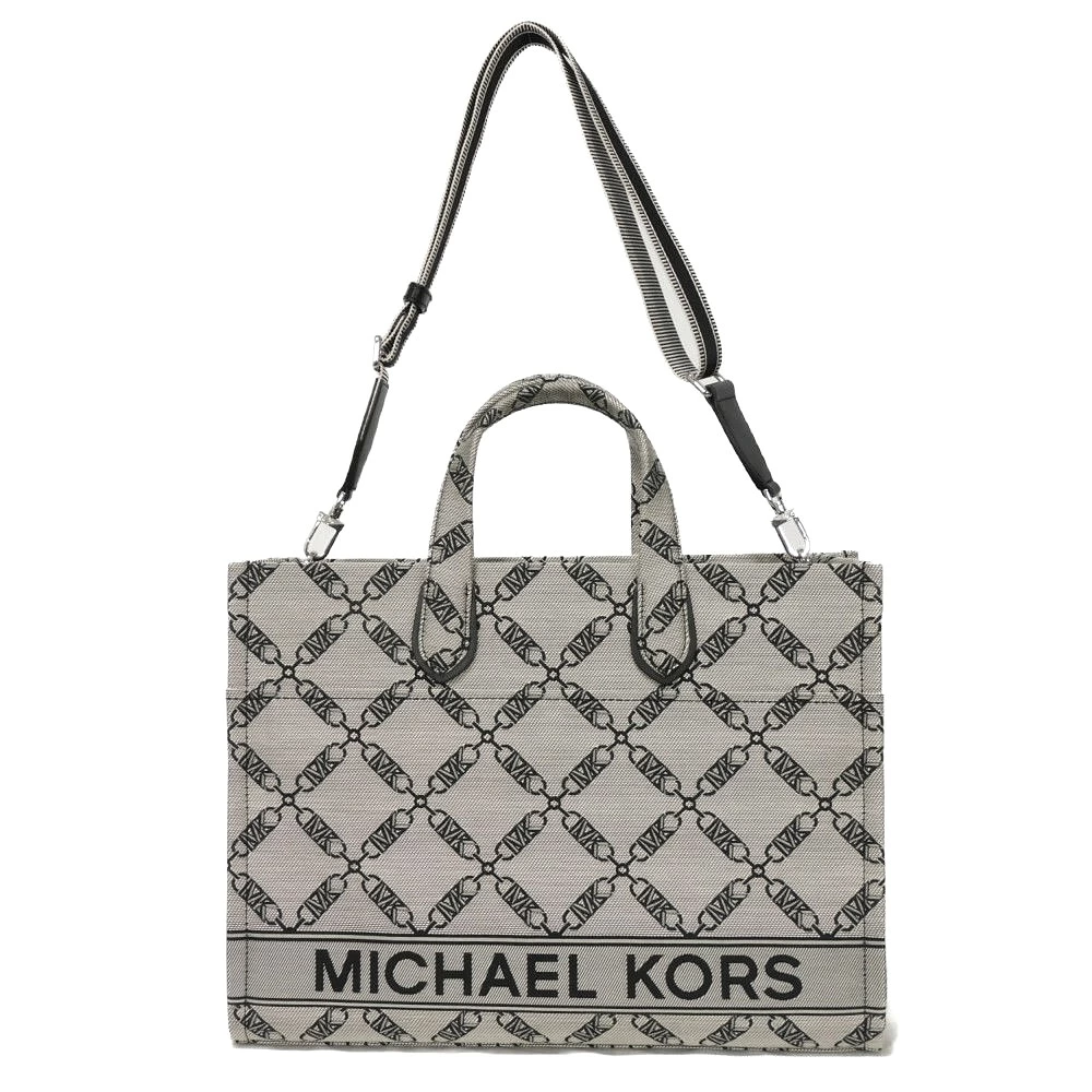 | ジャガードキャンバスにマイケルコースのMKパターンの総柄がデザインされた「ジジ エンパイア ロゴ ラージ トート」トートバッグです。取り外し可能なストラップでショルダーバッグとしてもお使いいただけます。 |