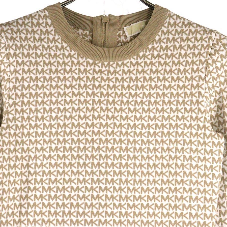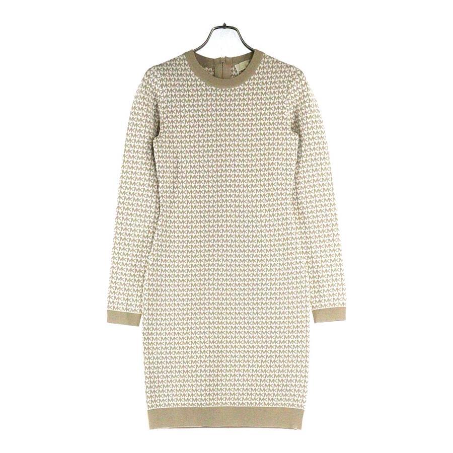 [モデル]MKモノグラム総柄 長袖ニットワンピース ベージュ レディース JH180X84GH
