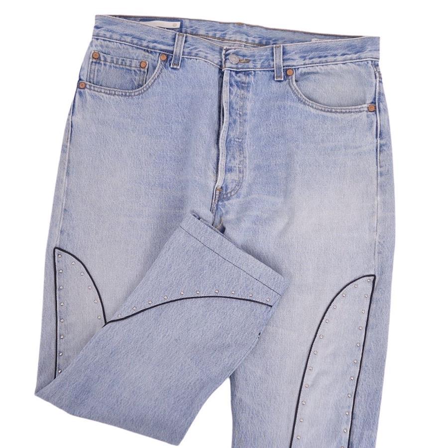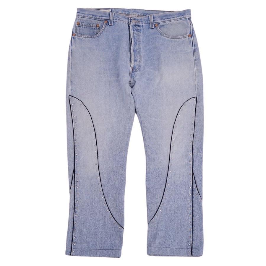 ■商品名マインデニム MINE DENIM パンツ デニム ジーンズ パイピング スタッズ OLDPARK オールドパーク ボトムス メンズ ライトブルー サイズ11■状態説明・様々な古着のジーンズを解体し、再構築して制作された1点物のMINE DENIMとOLDPARKのコラボデニム!・ヴィンテージのウエスタンシャツの袖口を模した切り替えが特徴的なデザイン♪・日本製・股部分に生地裂けが御座いますが、ご使用に差し支えるものはなくまだまだお使い頂ける状態です!【季節感:オールシーズン】【付属品:なし】■素材デニム■カラーライトブルー■表記サイズ11■実寸サイズウエスト:約88cm股上:約29cm股下:約63cm渡り幅:約27cm裾幅:約17cm総丈:約90cm■状態ランクB 傷や汚れがあるが、まだまだ使用可能な状態■店舗管理番号cf04mt-rm11r06701mens_blue mens_xlup