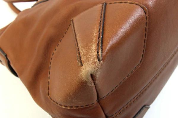 | 状態 | 外側:色合い所々マダラ、キズ・スレ・シワがあり、フチや角・ハンドルなどにスレによる色褪せ・色落ちあり。ハンドルに変形あり。 内側:多少の薄スレ・薄汚れあり。 金具:小キズ、若干クスミあり。 |
