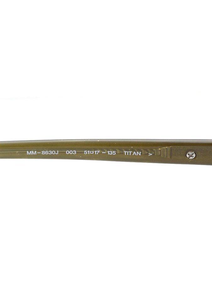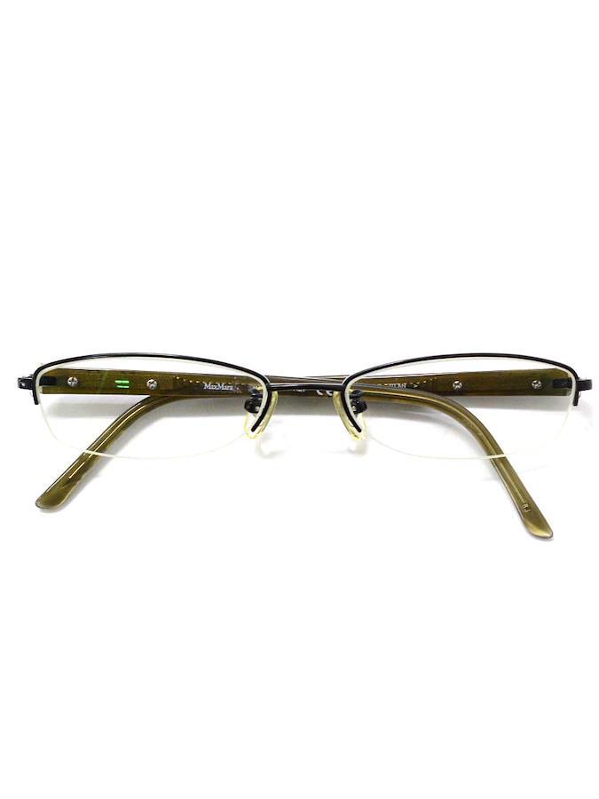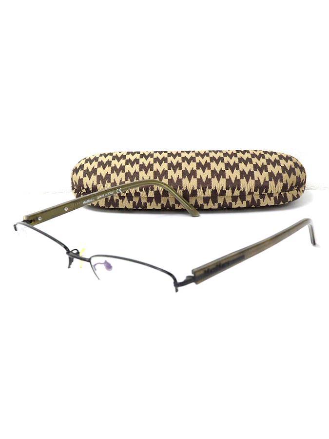 【管理番号】2521089s0244394【ブランド・アイテム】Max Mara メガネ【性別タイプ】ユニセックス【表記サイズ】51□17-135【実寸サイズ】縦幅:約2.2cm横幅:約14cmレンズ幅:約5cmテンプル:約13.5cm【カラー】ブラック / カーキ【素材】画像参照【状態の詳細】USED品のため、ある程度の使用感やダメージが見受けられるお品物となります。【汚れ・シミ】ノーズパッドにくすみがございます。左右テンプルに色付きがございます。【傷・ツレ】右フレーム丁番付近に擦れがございます。【毛玉・毛羽立ち】特に目立つものはございません。【使用感】あり【こんな方におススメ】少しぐらいのシミやダメージが目についても気にならない方にオススメ【付属品】眼鏡ケース・眼鏡拭き(取り外し可)付属品については画像に掲載のものが全てとなります。【備考】型番:MM-8630Jレンズは交換前提での販売をしております。