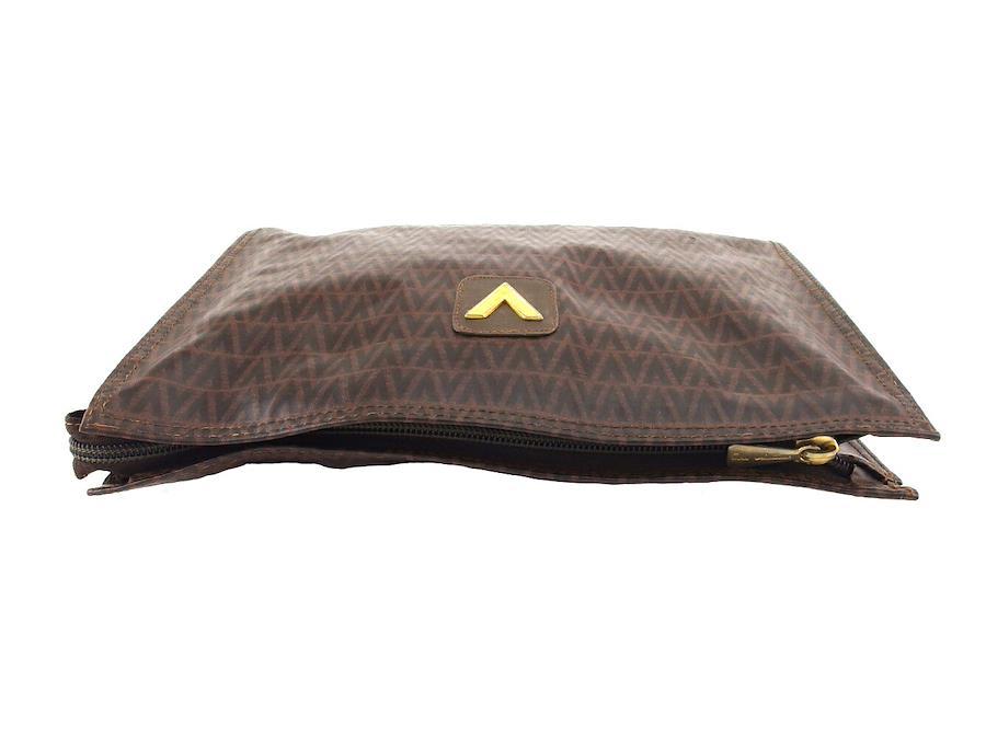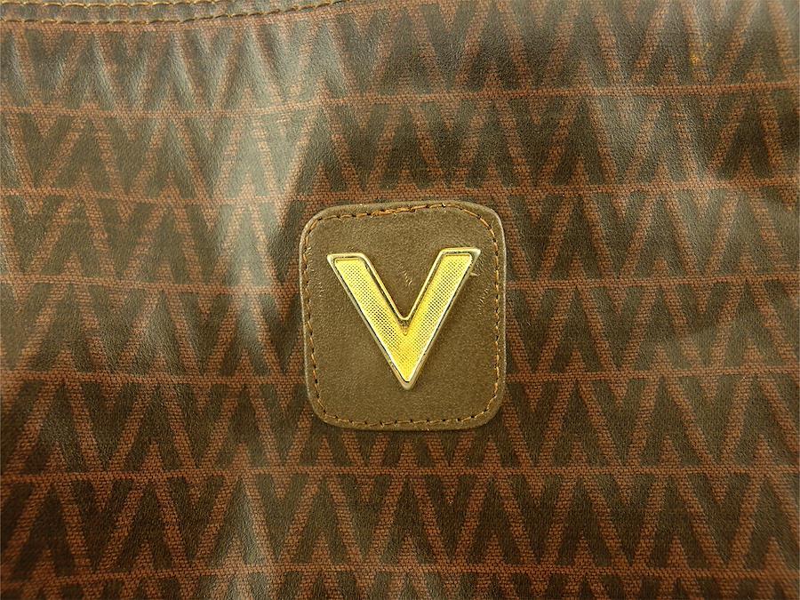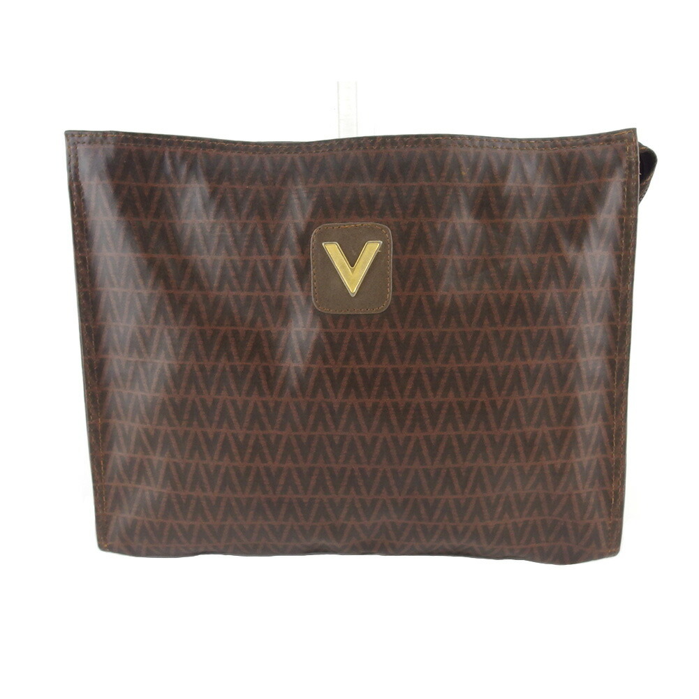 Pre-owned Mario Valentino clutch bag in brown and gold with a V mark.