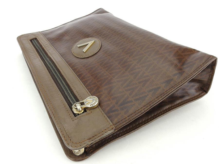Pre-owned Mario Valentino clutch bag with V mark in brown, silver, and gold. Women's.