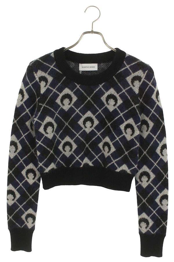Marine Serre Size: M 0 MOON ARGYLE KNIT CROPPED SWEATER Moon argyle mohair cropped knit