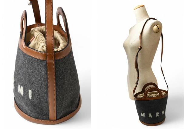 マルニより、イタリア産まれのブランド。コンスエロ・カスティリオーニが、自分の手で作りたい、という想いのもと、1994年に立ち上げました。上品でフェミニンなデザインに加え、シンプルでありながら独創的なシルエットが特徴です。ハンドメイド風の素材感が魅力です。スタイルにあわせて、2wayスタイルがお楽しみい頂けます。巾着は、取り外しも可能です。
