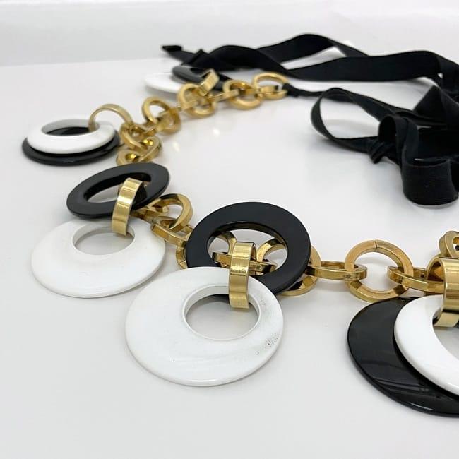 ☆---- 商品について ----☆マルニ ネックレス ec-23620 ブラック ホワイト ゴールド 美品 メタル プラスチック 中古 MARNI チェーン アクセサリー リボン 定番 人気 レディース お洒落 箱付き 箱 シンプル 黒色 白色 黒 白 エレガント 長い ロング 高級感 上品 ブランド 本物 鑑定済み