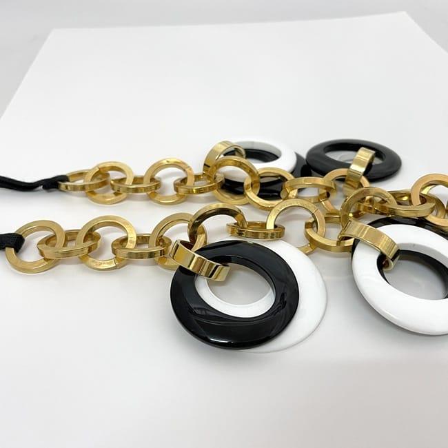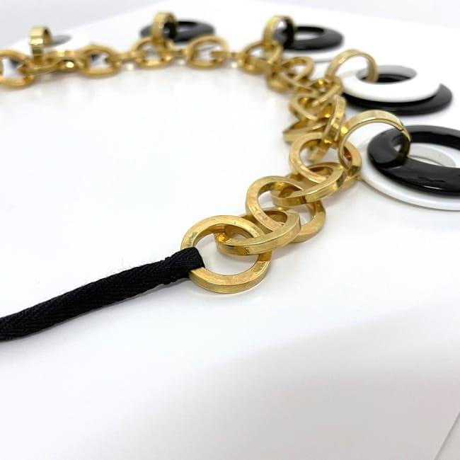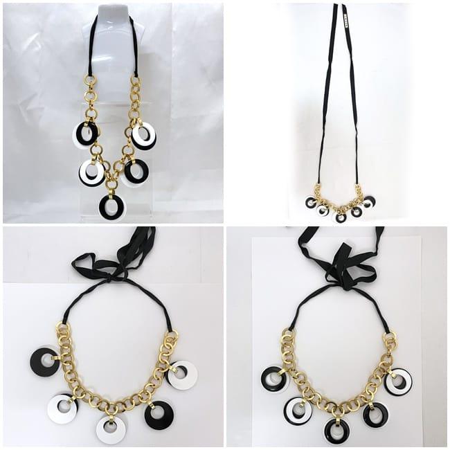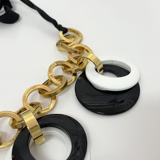 Marni necklace black white gold good condition metal plastic used MARNI chain accessory ribbon classic popular ladies fashionable box included box simple black white black white elegant long luxury