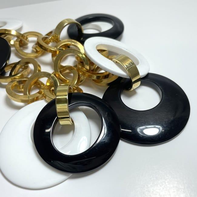 商品名:ネックレスブランド名:マルニ/MARNI商品ランク:ABランク素材:メタルプラスチックサイズ:(約)全長:185cm金具部分の長さ:40cmリング(大):直径5cm(小):直径4.5cm型番・品番:-カラー:ブラックホワイトゴールド付属品:箱布袋詳細説明:表面に多少の傷や汚れ有、その他目立った使用感はなく比較的綺麗なお品物です。管理ナンバー:ec-23620no,3300155250724