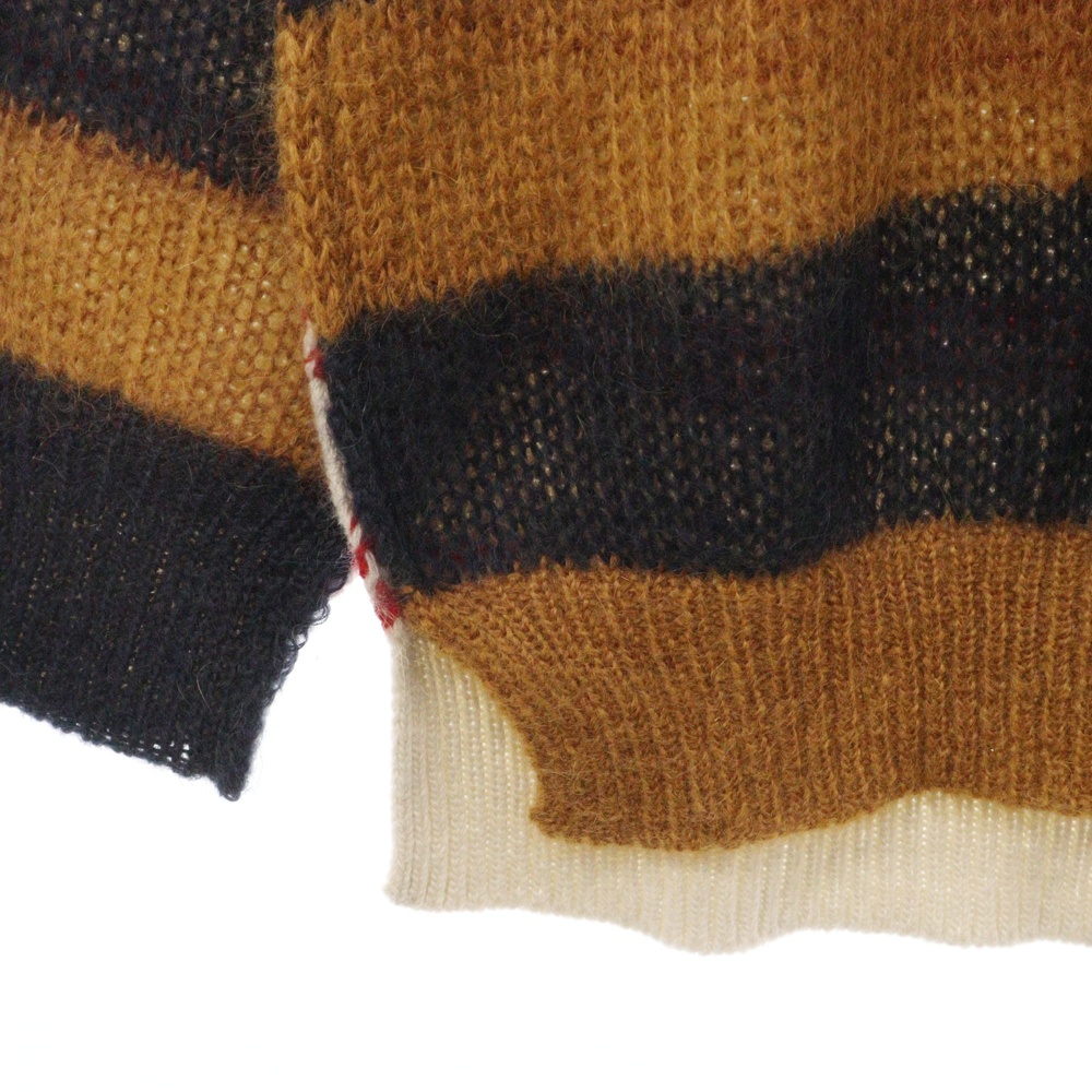[モデル]モヘア切り返し ボーダー柄クルーネックニット レディース ブラウン/ホワイト GCMD281Q0UFU190