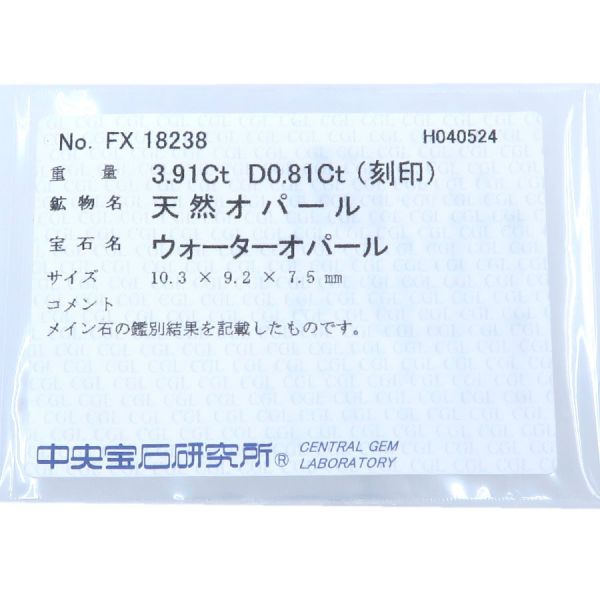 (素材)Pt950 (カラット)Op3.91ct / D0.81ct (サイズ)#11 (正面)最大約 約10.3mm × 最大横 約9.2mm (リング幅)最小約2.3mm (総重量)約7.2g