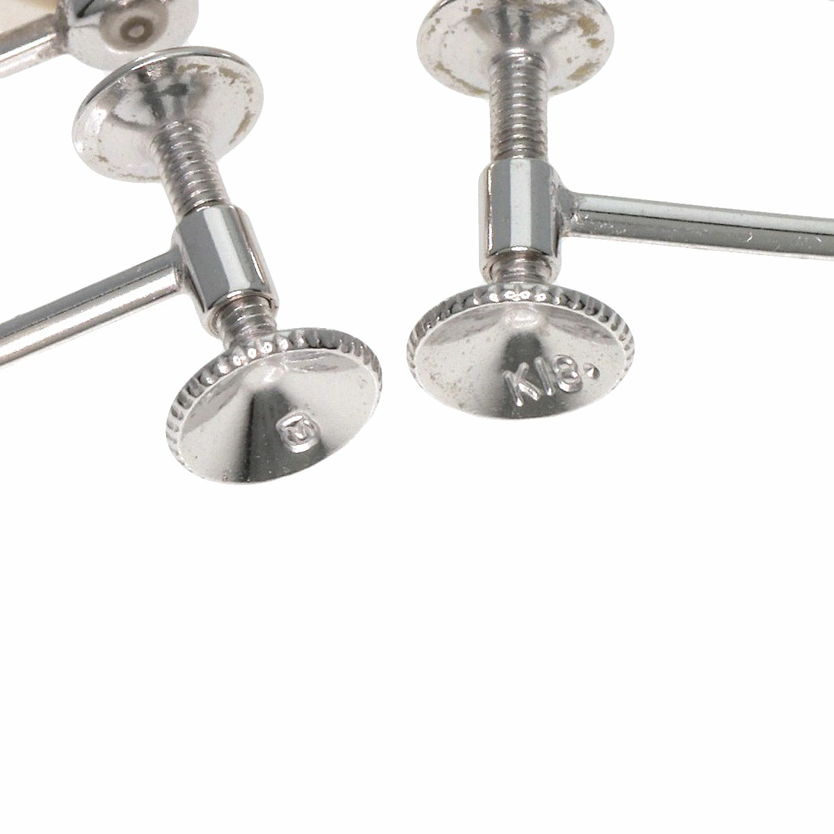 イヤリングのパールサイズは約7.8mm、金具はK18WGです。保存箱内のプレートにネーム刻印がございます。