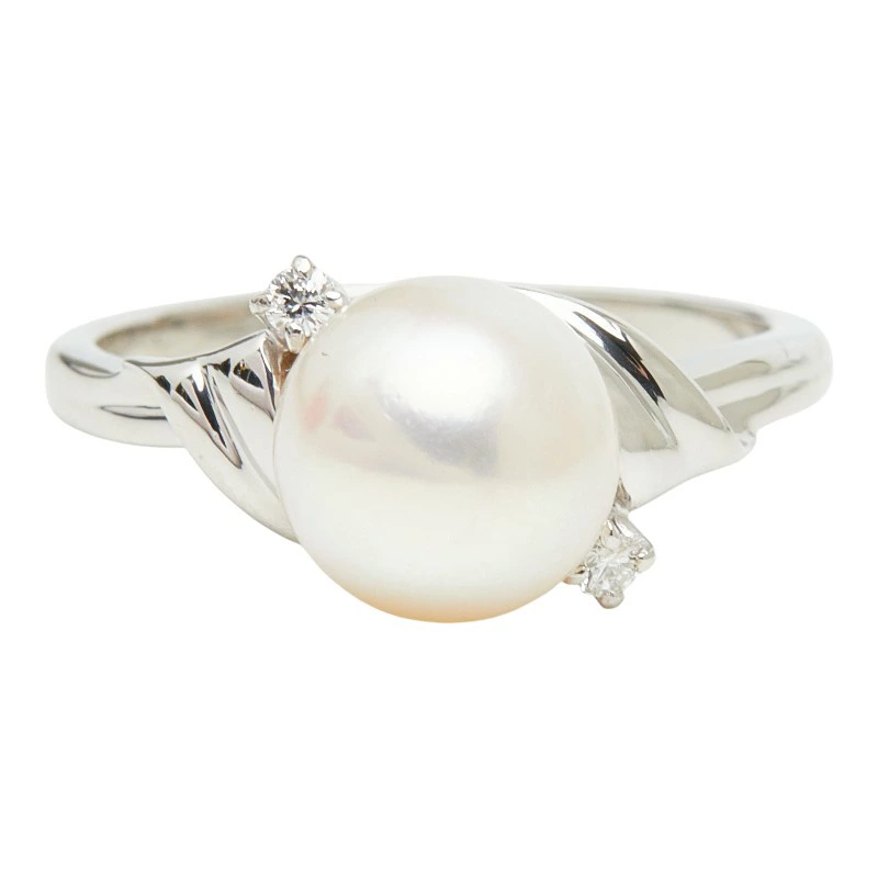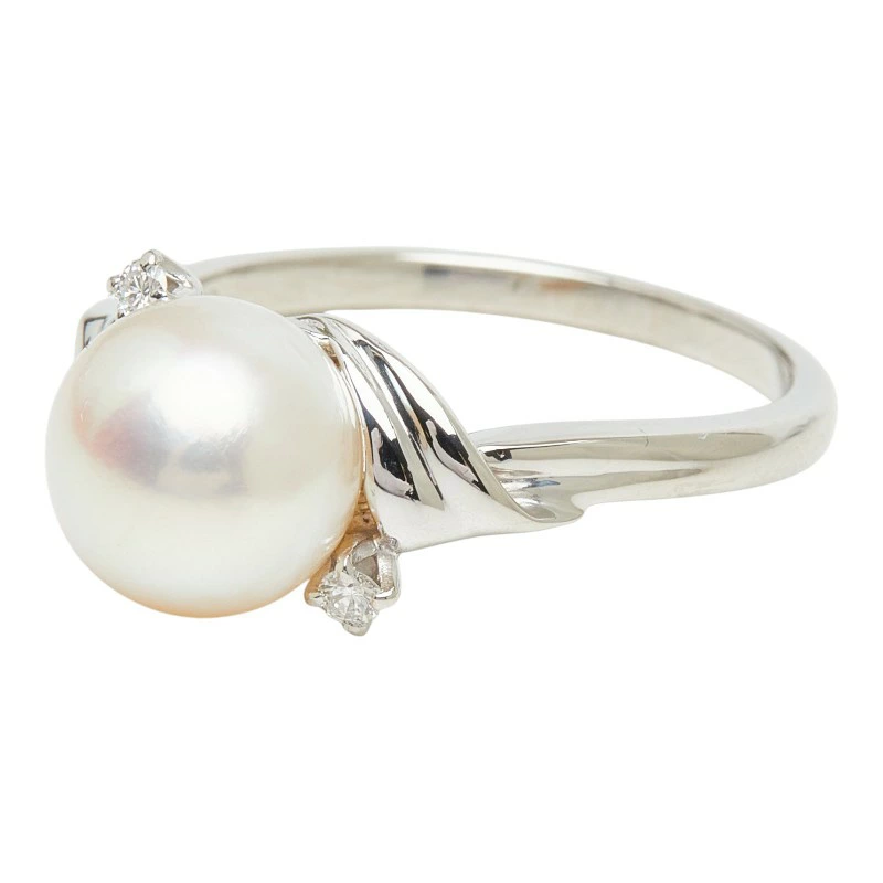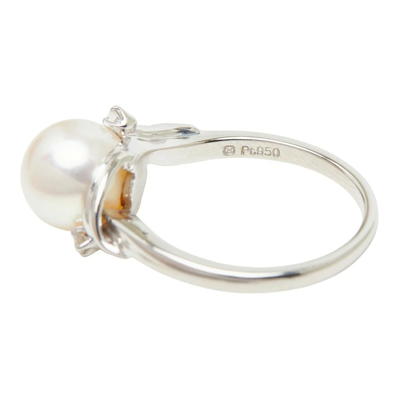 - ミキモト 真珠 Pt950 プラチナ アコヤパール8.3mm ダイヤ リング 指輪 レディース MIKIMOTO 12号 【中古】