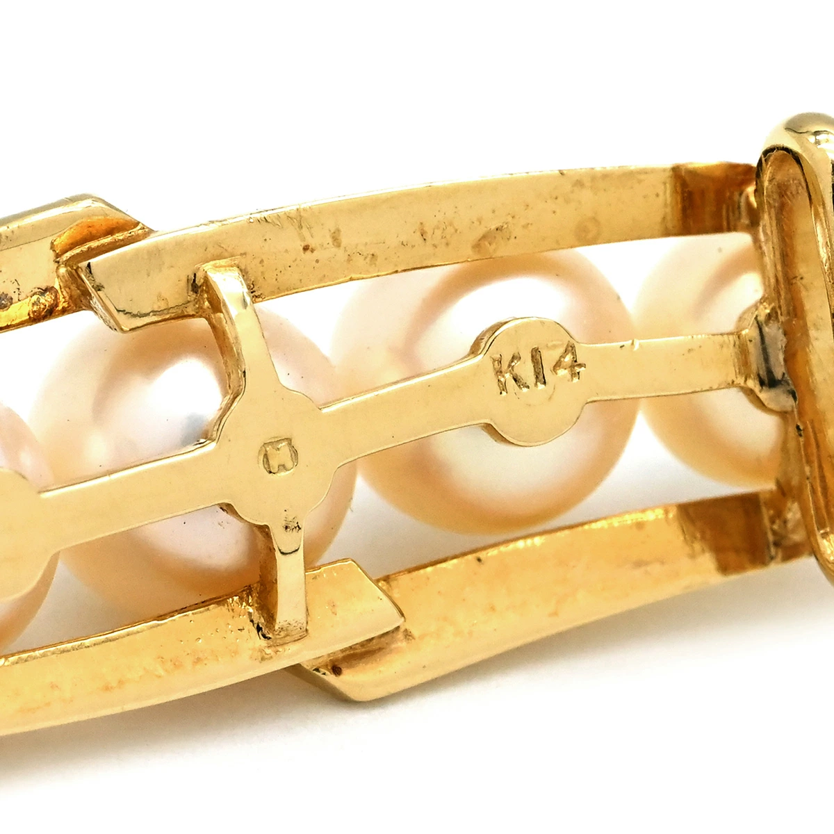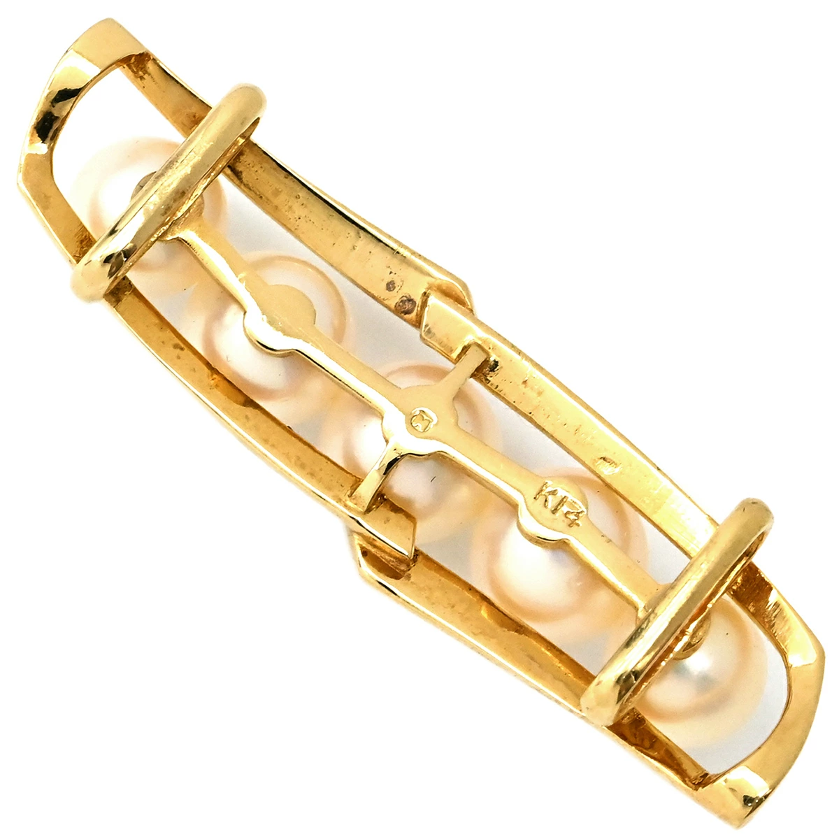 ▲クリックで拡大されますミキモト MIKIMOTO アクセサリー パール 帯どめ K14YG パール パールホワイト MIKIMOTO 帯留め 5P 5粒 真珠 あこや - レディース 【中古】