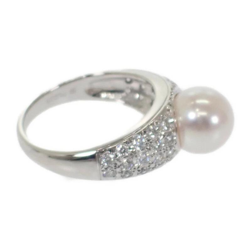 上品な光沢を放つアコヤ真珠に、輝きの異なるダイヤモンドを添えることで、洗練された気品と柔らかな女性らしさを引き立てています。リング素材には高純度のPt950プラチナを使用し、耐久性と高級感を兼ね備えた仕上がりに。