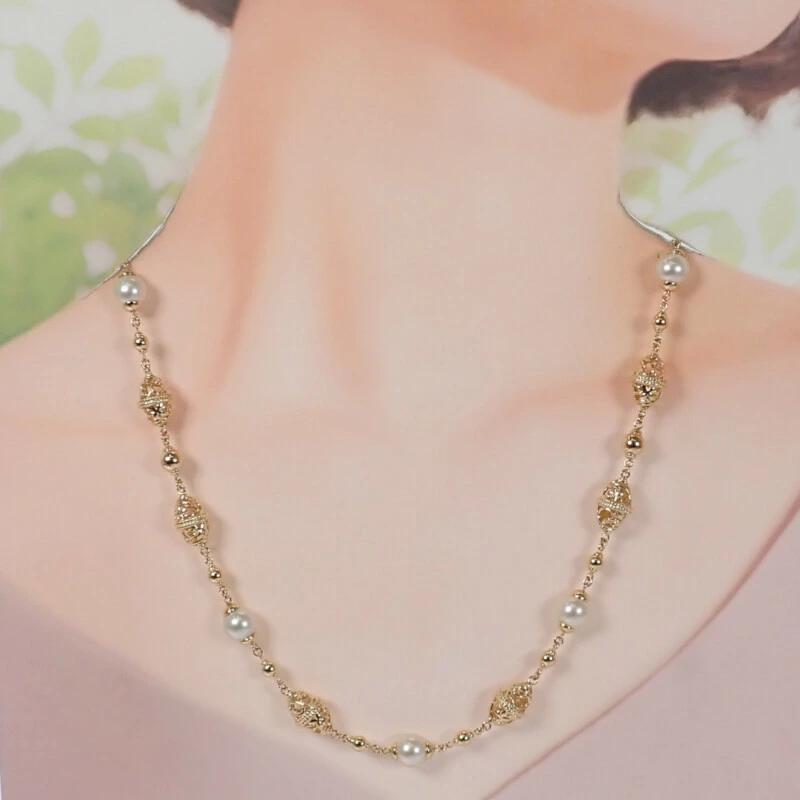 7つのパールとイエローゴールドの美しい装飾が施されたチェーンは、流行に左右されず普遍的な美しさを感じさせます。