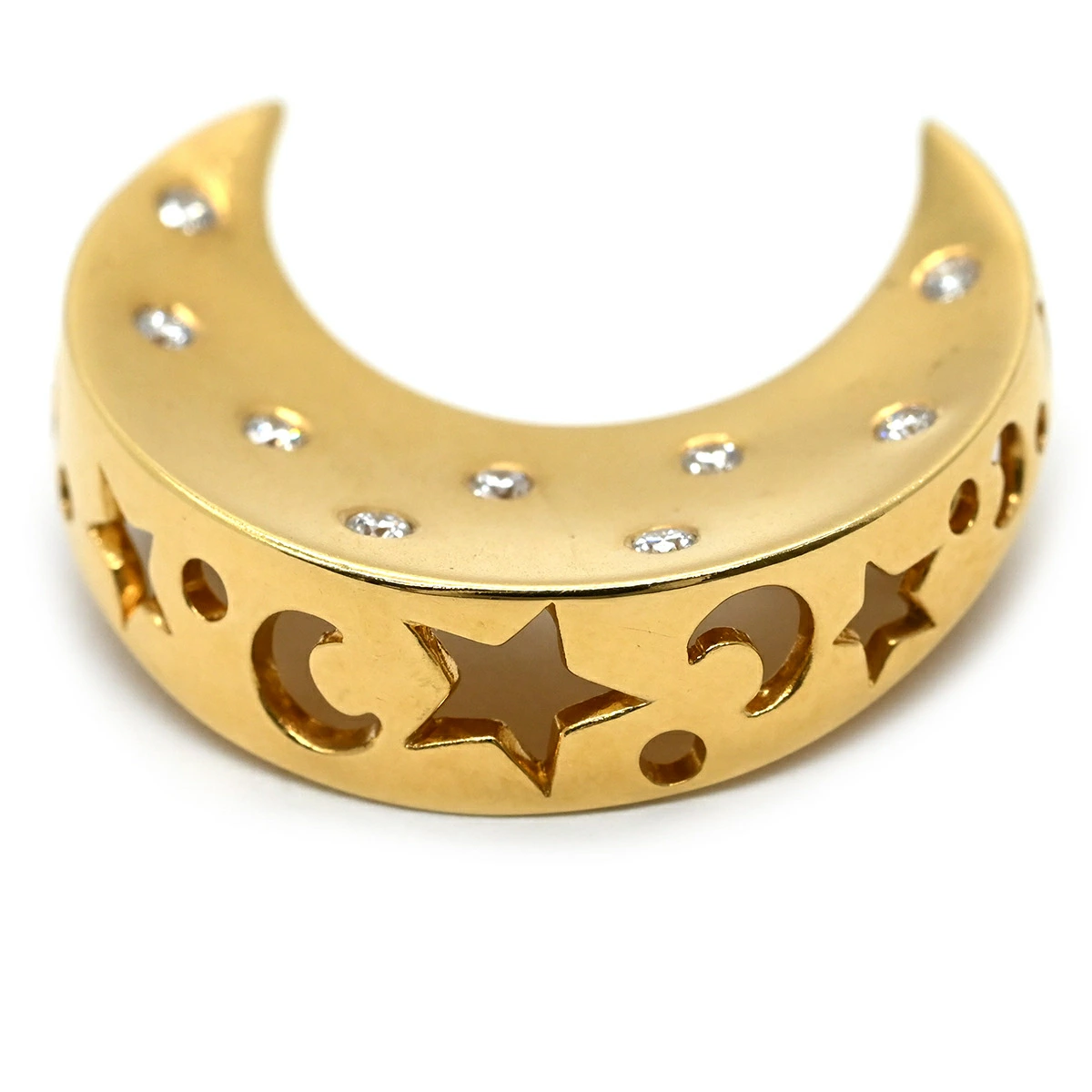 ▲クリックで拡大されますミキモト MIKIMOTO ブローチ 三日月 K18YG ダイヤモンド イエローゴールド 月モチーフ レディース定番 人気 美品 【中古】