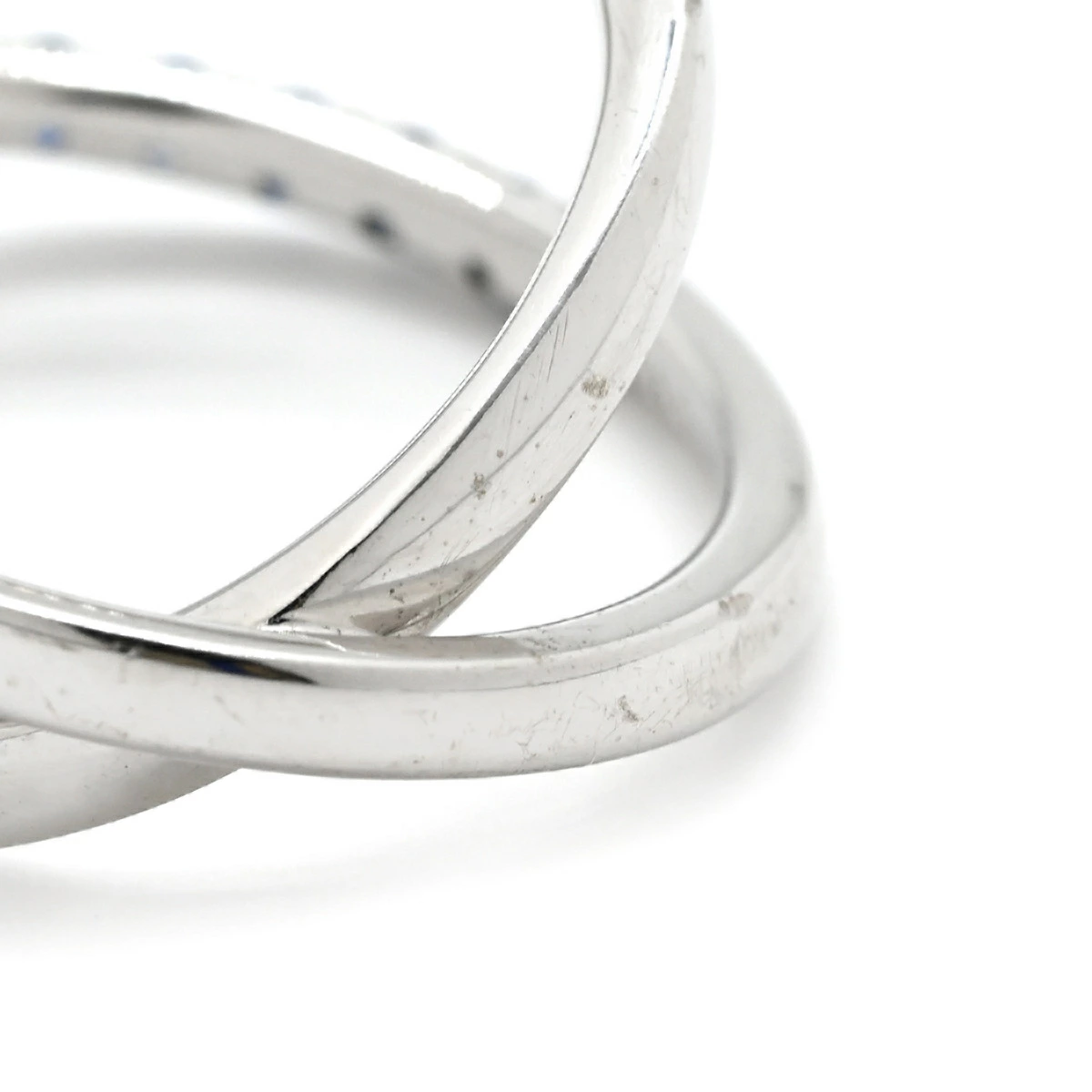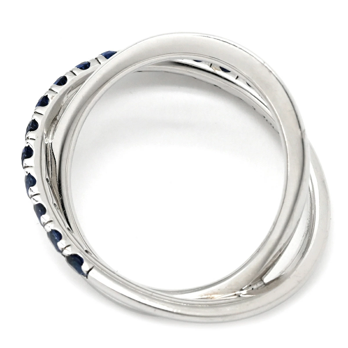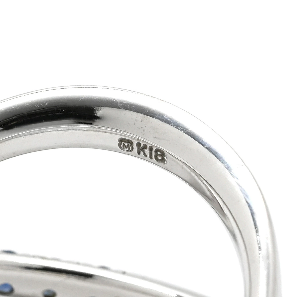 ▲クリックで拡大されますミキモト MIKIMOTO リング 指輪 クロスオーバーリング K18WG ホワイトゴールド×ブルー MIKIMOTO Au750 18K ブルーサファイア X字型 - 16号 メンズ レディース ユニセックス定番 人気 美品 【中古】