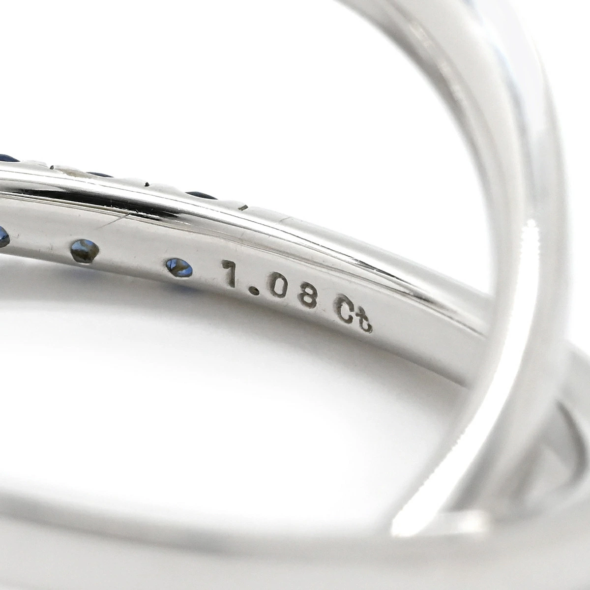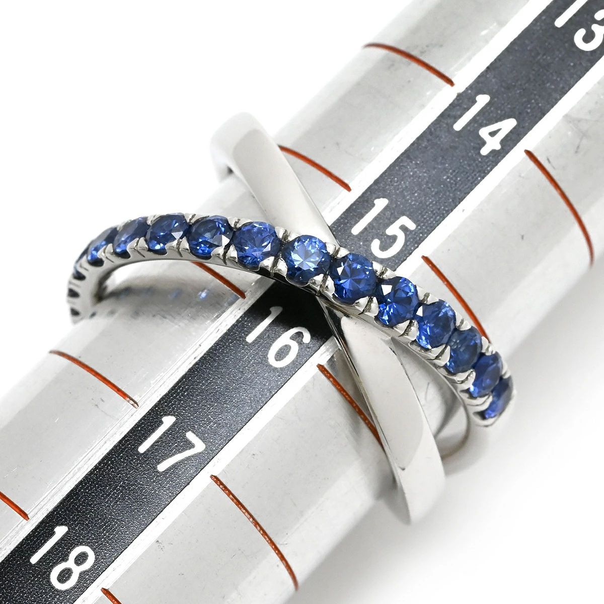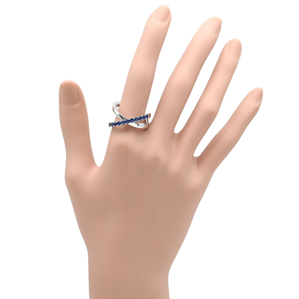 ▲クリックで拡大されますミキモト MIKIMOTO リング 指輪 クロスオーバーリング K18WG ホワイトゴールド×ブルー MIKIMOTO Au750 18K ブルーサファイア X字型 - 16号 メンズ レディース ユニセックス定番 人気 美品 【中古】
