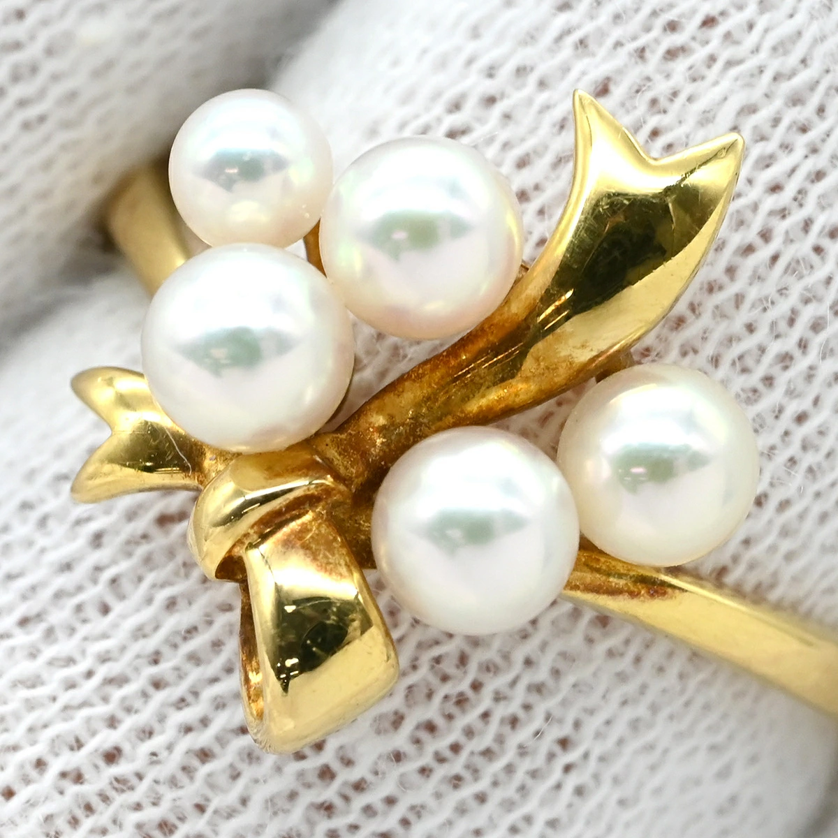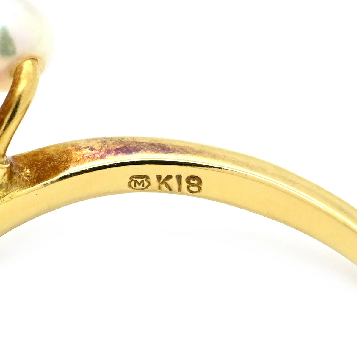 ミキモト MIKIMOTO リング 指輪 K18YG パール パールホワイト×イエローゴールド Au750 18K 18金 真珠 アコヤ あこや ベビーパール リボンモチーフ - 11号 レディース 【中古】