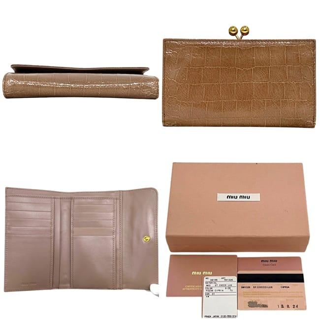 商品名:がま口二つ折り財布ブランド名:ミュウミュウ/miumiu商品ランク:Aランク素材:パテントレザーサイズ:(約)w:14.7cm×h:8.7cm×d:3cm型番・品番:5M1326シリアル:178ライン:ST.COCCOLUXカラー:ベージュCIPRIA仕様:札入×1、オープンポケット×3、カードポケット×10、小銭入れ(がまぐち)×1付属品:ギャランティカード、箱、印刷物詳細説明:角や縁に擦れ、金具にくすみ汚れ有、その他目立った使用感はなく比較的綺麗なお品物です。管理ナンバー:ec-25321no,0900321260328