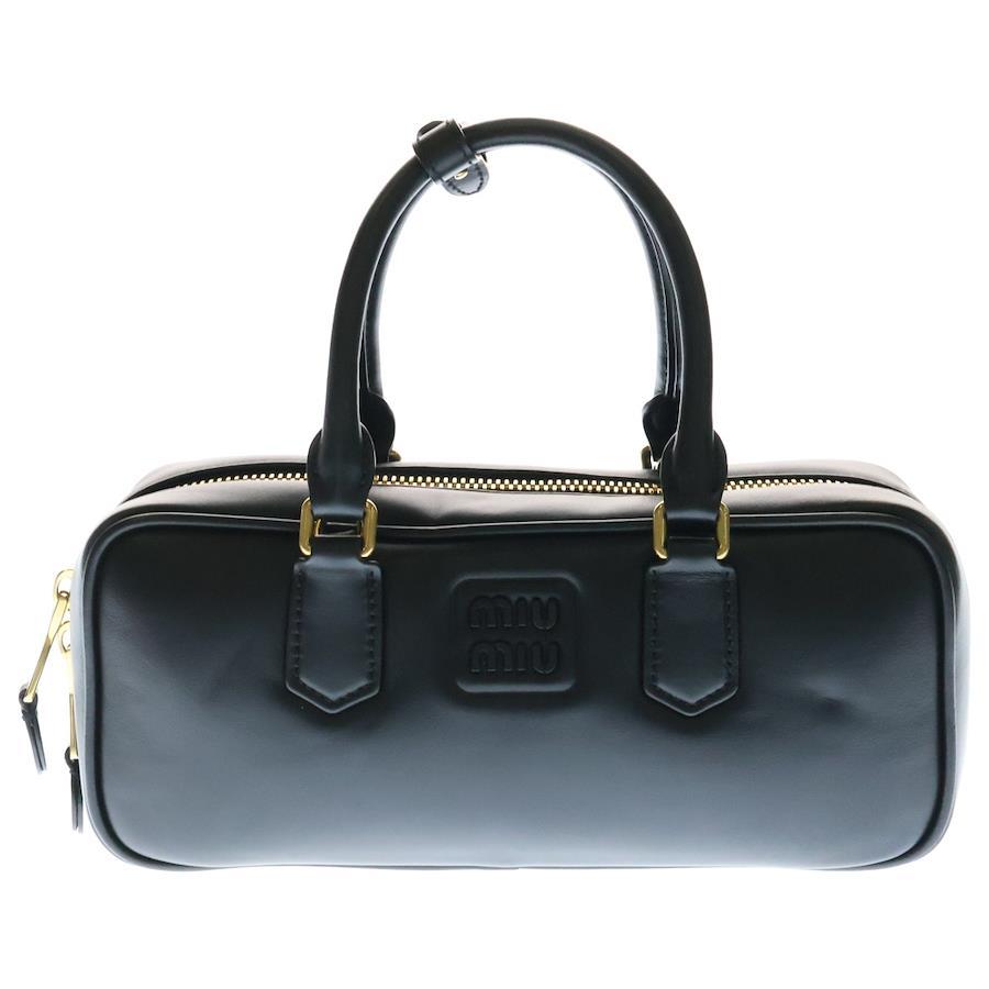 Miu Miu Arcadi 2-Way Handbag, Shoulder Bag, Mini Bag, Black Leather with Gold Hardware, 5BB148 - Black