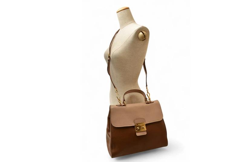 | 商品説明 | ミュウミュウより、人気の高い2wayバッグです。ベージュとブラウンのバイカラーデザインが美しい2WAYバッグが登場。ハンドバッグとしても、ショルダーバッグとしても使用可能で、A4サイズ収納対応の実用的な大容量タイプです。 |