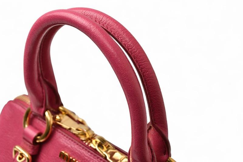| 商品説明 | ミュウミュウ(MIU MIU)の人気シリーズ「マドラス」より、華やかなピンク(PEONIA)カラーが目を惹く2wayショルダーバッグです。 上質なマドラスレザーを使用し、しっかりとしたフォルムながら柔らかさのある質感が特徴。ハンドバッグとしても、付属のショルダーストラップで斜め掛けバッグとしても使える実用的なデザインです。シンプルながらもブランドロゴのゴールド金具がアクセントとなり、デイリーからお出かけシーンまで幅広く活躍します。 |
