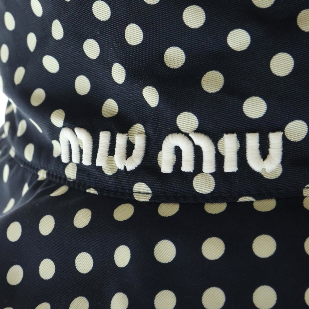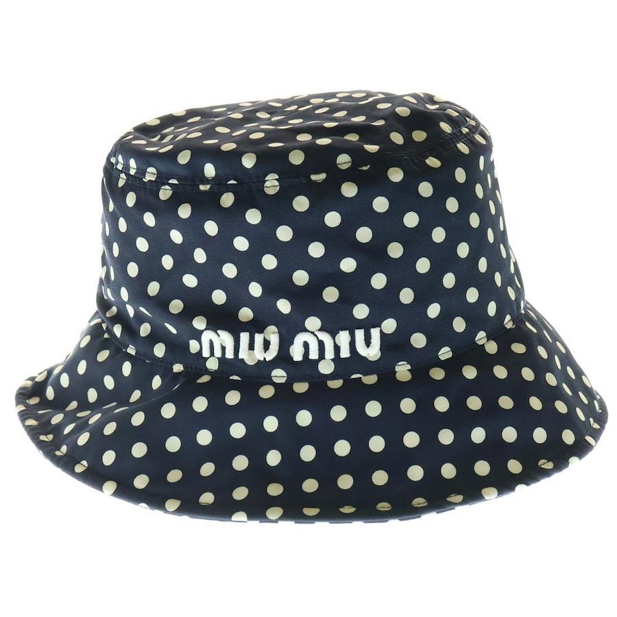 [モデル]バケットハット ロゴ ドット柄 ネイビー キャンバス 5HC196