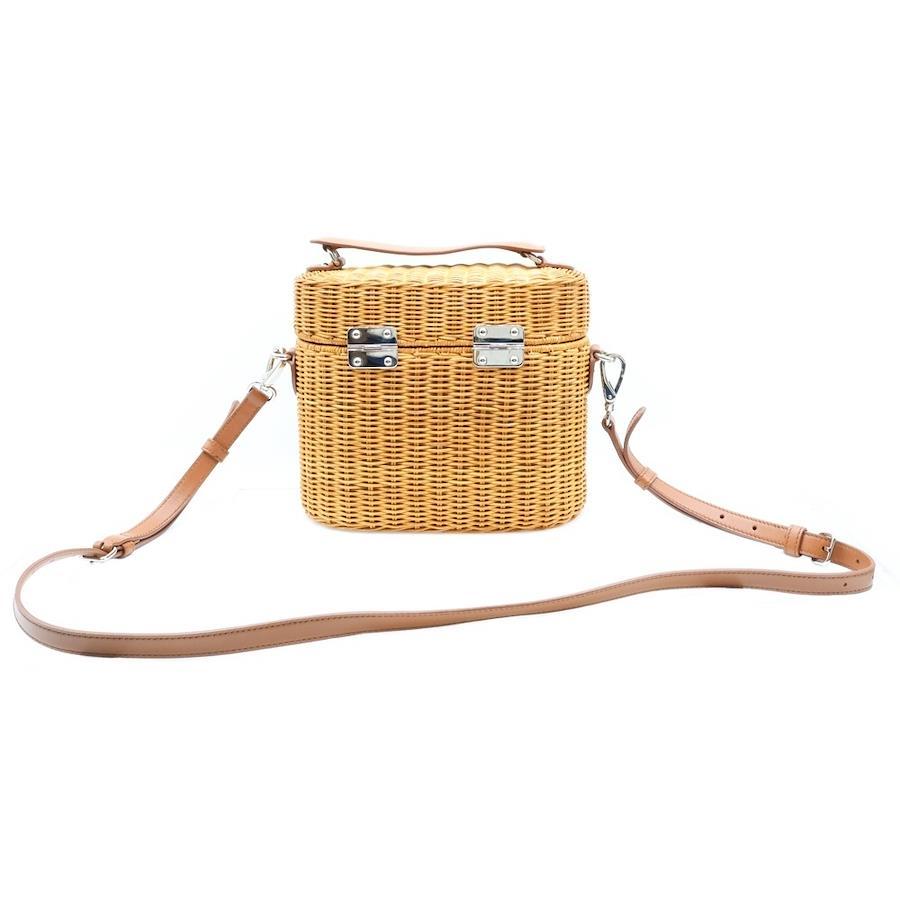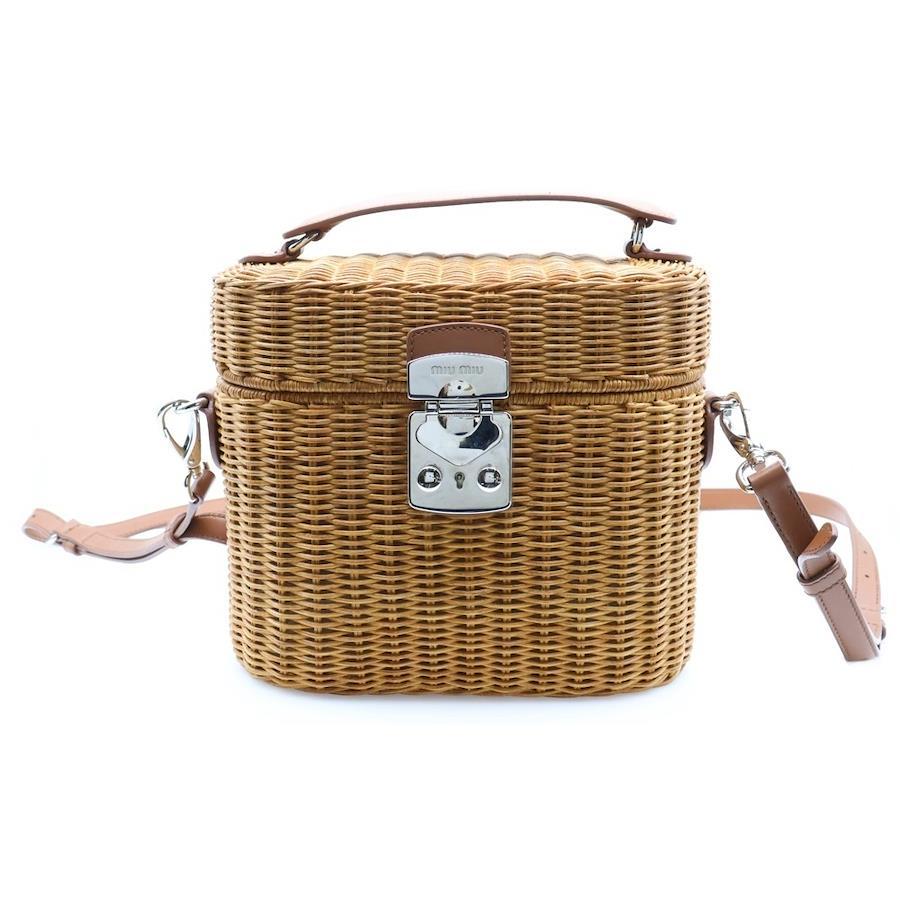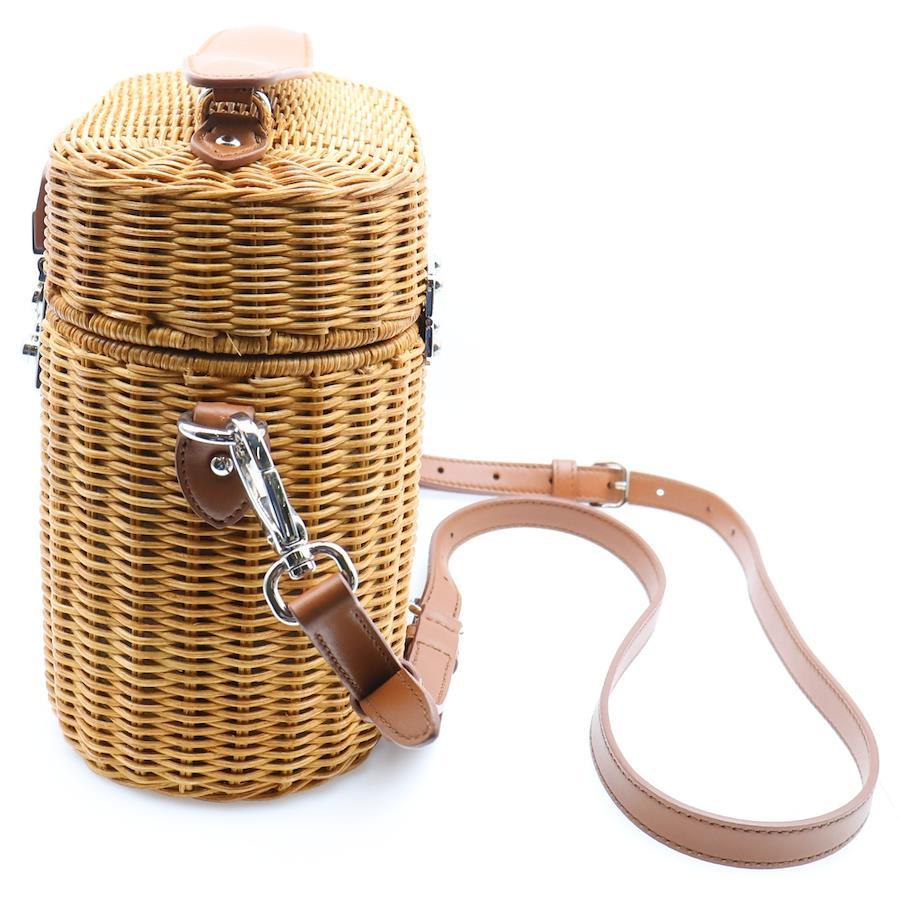 [モデル]バニティバッグ カゴバッグ 2wayショルダーバッグ ブラウン ラフィア×レザー ストロー 5BH129 レディース