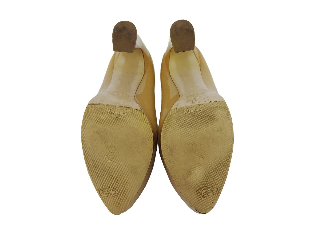 コンディション全体の状態詳細:使用感はありますが、まだまだご使用いただけます。外側:ソール(ヒールゴムすり減り、汚れ、底滑り止め部分1箇所剥がれ)、エナメルレザー(踵部分に傷&着色修正、変色、傷、汚れ)あり。その他、目立たない 傷 汚れ などの一般的使用感があります。