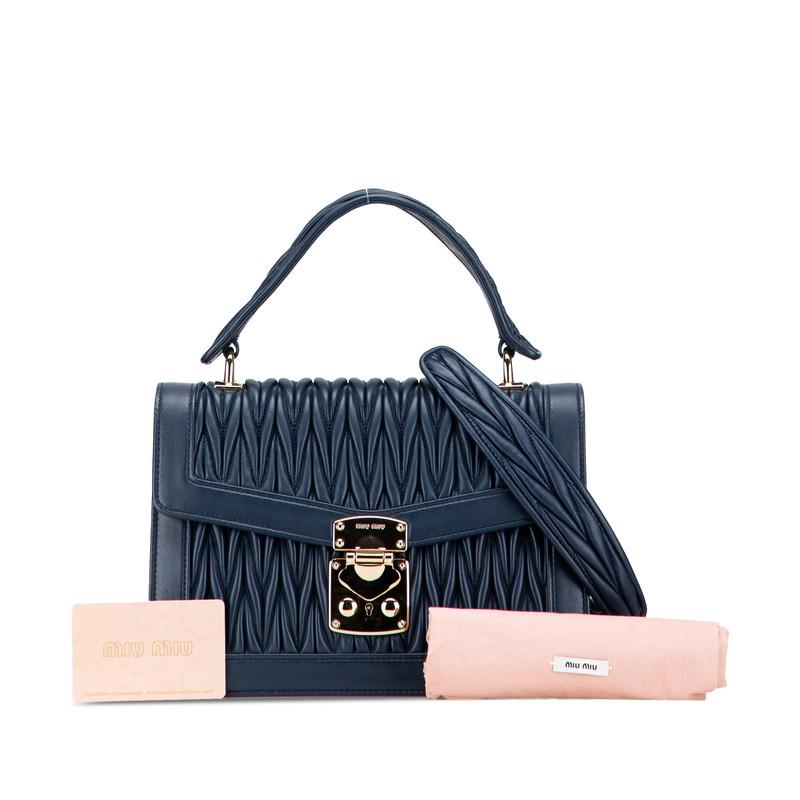 ■商品情報[管理番号]1-0221082[ブランド]ミュウミュウ(MIUMIU)[型番]5BA094[対象]レディース[カラー] ネイビー[ライン]マテラッセ[素材]レザー[サイズ]W約25cmxH約18cmxD約10cmハンドル高さ:約10cmショルダー高さ:約51cm開閉式:ロック金具内側:オープンポケットx1、ファスナーポケットx1[付属品]保存袋(本体),ギャランティ,ショルダーストラップ[状態・コンディション]ランク AB全体コンディション詳細:外側⇒スレサイド⇒スレ底面⇒角スレハンドル⇒スレショルダー⇒スレ金具⇒キズ・汚れフラップ・付け根・裏⇒スレ内側⇒スレ