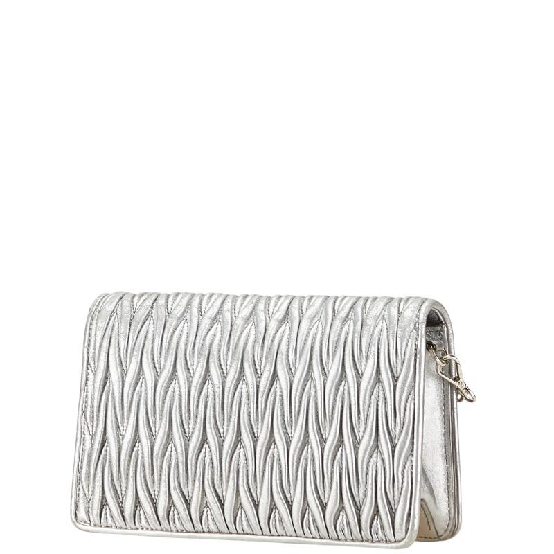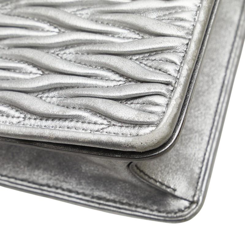 ■商品情報[管理番号]228-28949[ブランド]ミュウミュウ(MIUMIU)[対象]レディース[カラー] シルバー[ライン]マテラッセ[素材]レザー[サイズ]W約19cmxH約13cmxD約5cmショルダー高さ:約50cm開閉式:ターンロック内側:オープンポケットx1、カードポケットx3[付属品]付属品なし[状態・コンディション]ランク AB全体コンディション詳細:サイド⇒スレ底面⇒角スレ金具⇒スレフラップ・付け根・裏⇒根本サイド部分の破れ内側⇒スレ・薄汚れ