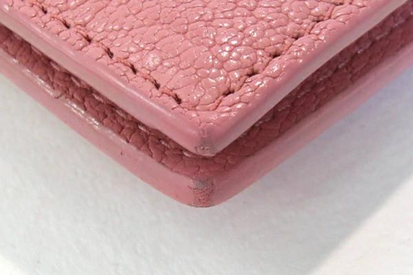 | 状態 | 外側:薄汚れあり。角にスレ、フチ周りにコーティング割れあり。正面クリアストーンのエッジに欠けあり。 内側:薄スレ、薄汚れあり。札入れ、小銭入れにも汚れあり。 金具:小キズ、スレあり。 ※香水系ニオイ強めにあり。 |