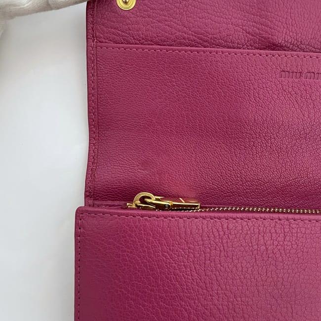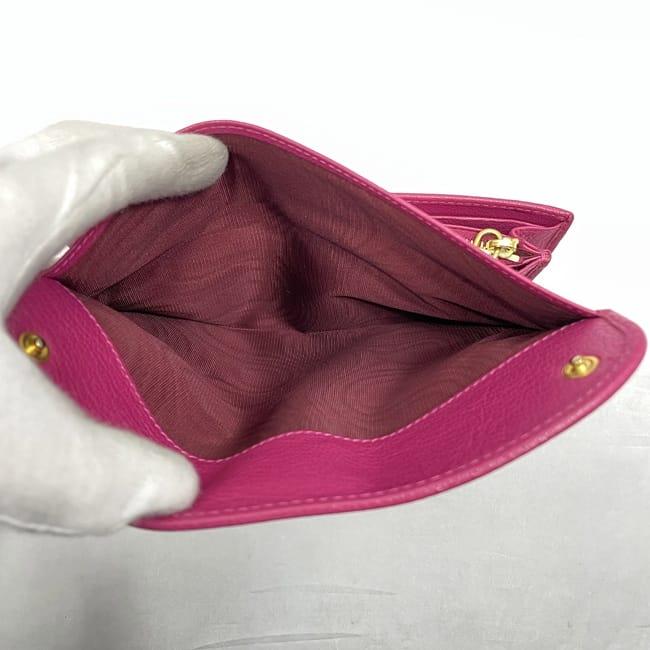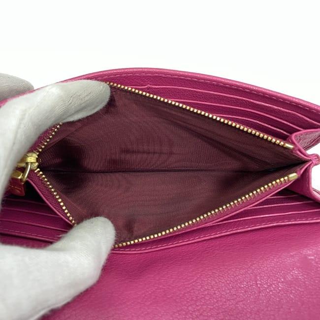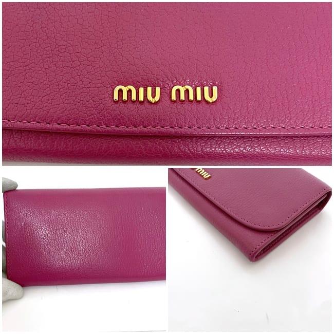 ミュウミュウ 二つ折り 長財布 ec-22779 ピンク 財布 美品 レザー 中古 64 miu miu ホック 本革 ロゴ金具 ロゴ シンプル 定番 人気 女性 レディース お洒落 ロング ウォレット 革 ワンポイント エレガント 小物 無地 可愛い 高級感 上品 ブランド 本物 鑑定済み