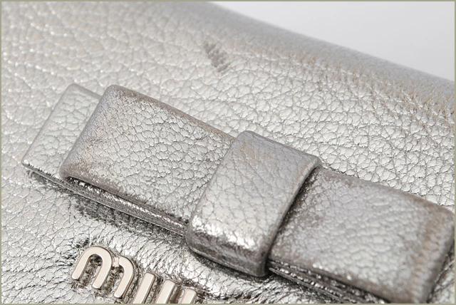 ミュウミュウより、人気の高いマドラスシリーズです。リボンのモチーフがアクセントに!山羊革の型押しレザーで、高級感の漂う、しなやかな肌触り。2層に別れた大きめのコインケースは、小銭が多くなりがちな方にもおすすめです。お買い物時にも、ポケットお札、レシートやチケットなど、区分けしやすいデザインです。