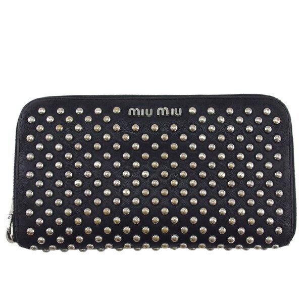 [24% OFF Coupon] Miu Miu Long Wallet with Studs and Logo, Black, Women's, Pre-owned, MIUMIU