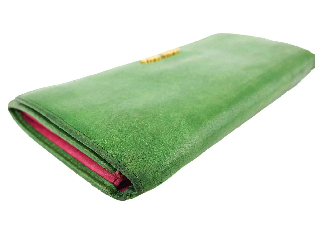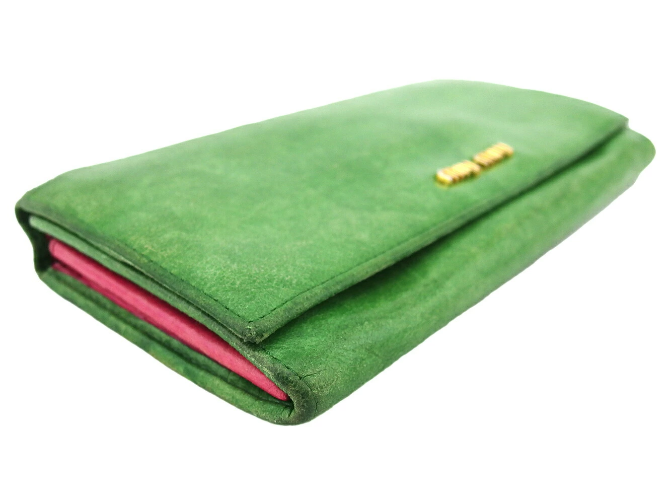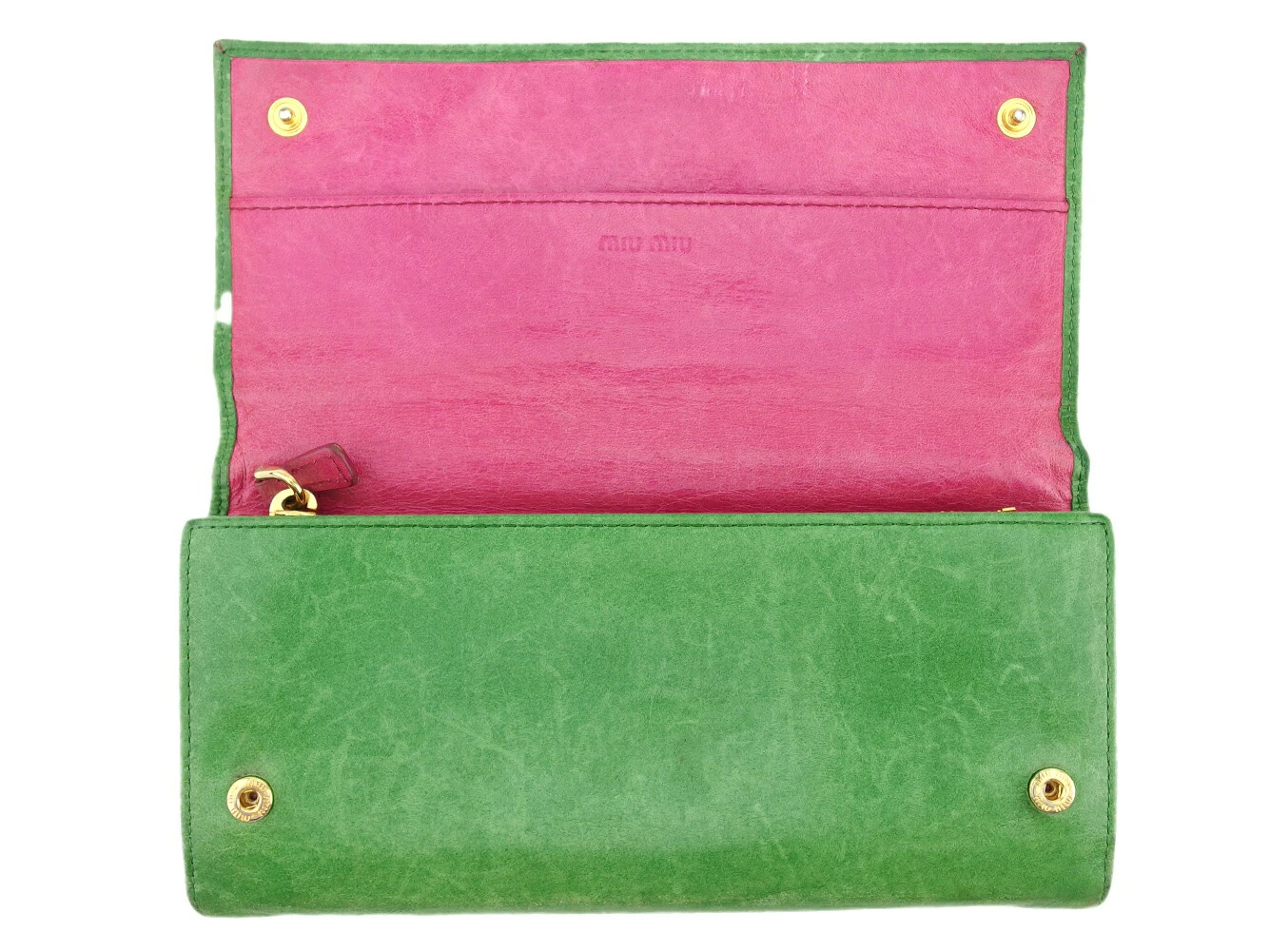 [24% OFF Coupon] Miu Miu Long Wallet Logo Green Pink Women's Pre-owned MIUMIU