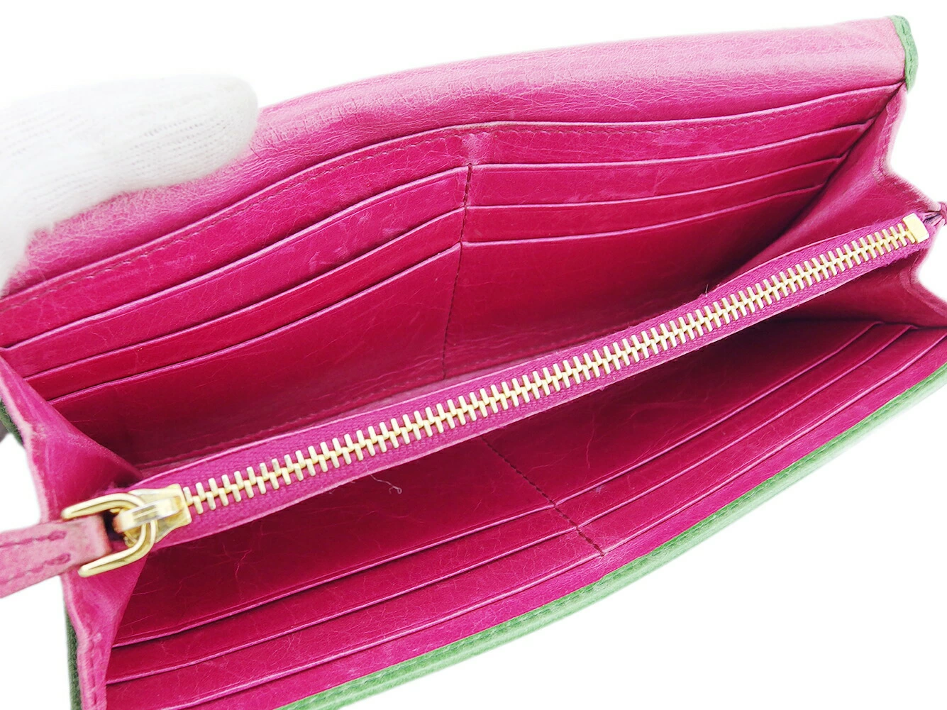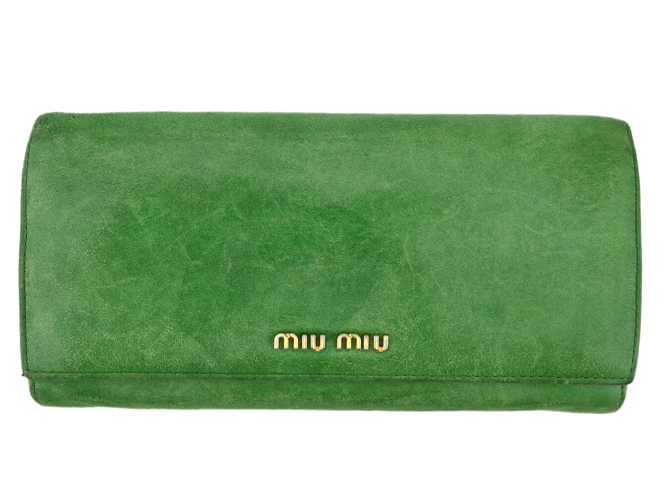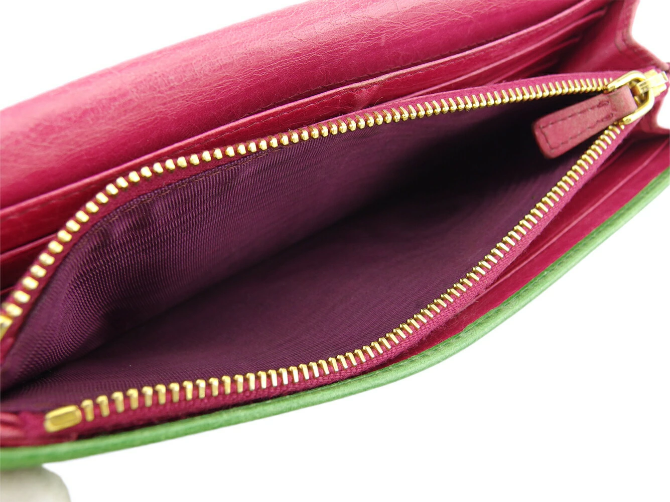 [24% OFF Coupon] Miu Miu Long Wallet Logo Green Pink Women's Pre-owned MIUMIU