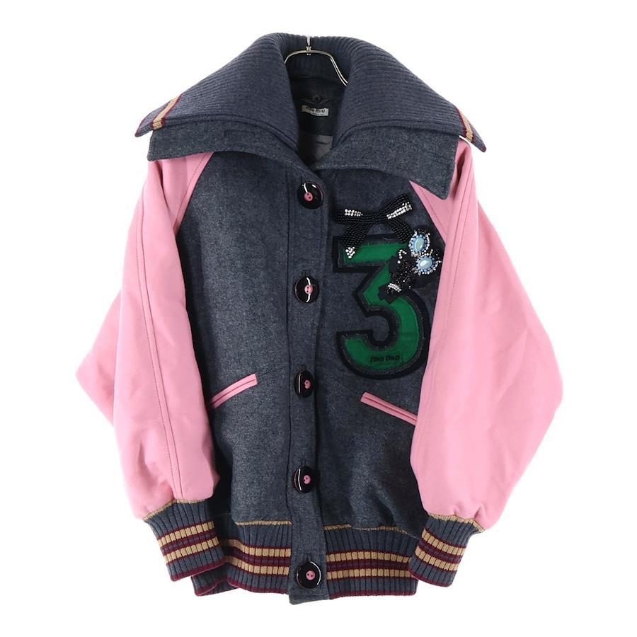 [モデル]17AW アップリケビーズ刺繍ウールスタジアムジャケット セーラーカラーブルゾン ピンク レディース ML442 1PGX